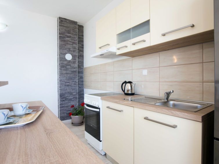 "Suzana", 2-room apartment 55 m2 on 1st floor. Living/dining room with 1 sofabed and satellite TV (flat screen), air conditioning. Exit to the balcony. 1 room with 1 double bed. Open kitchen (oven, 4 ceramic glass hob hotplates, toaster, kettle, freezer, electric coffee machine). Shower/WC.