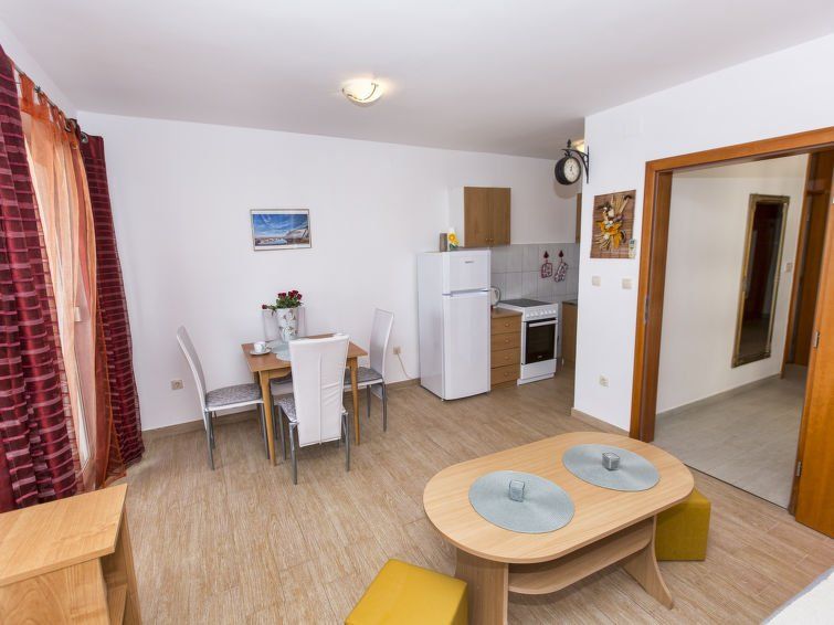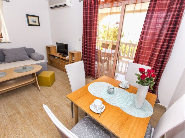 The beautiful apartment is located directly on the sea, it has a large covered balcony with a beautiful marble floor and a great direct view of the sea. The apartment has a comfortable living/dining room with a kitchen corner and a pull-out sofa bed. The bedroom is a bit cramped with the large double bed. The small bathroom with shower and toilet as well. The landlord's family is very friendly and accommodating. We would love to come back to the apartment again.