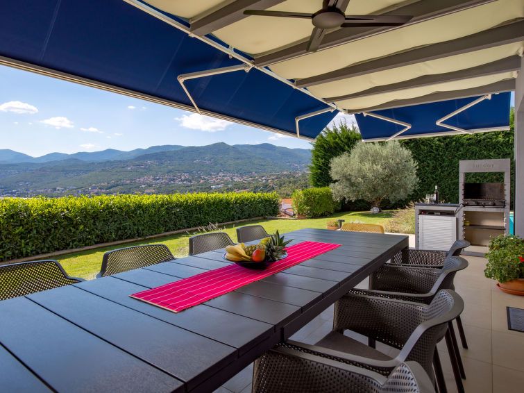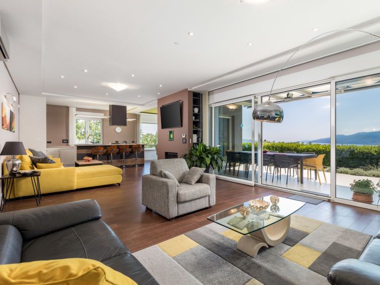 The villa leaves nothing to be desired. Amazing sea views, beautiful garden, and a fantastic pool. The villa consists of three separate apartments, so everyone can find their own space. Downstairs, there are two bedrooms with a living room, kitchen, bathroom, and toilet. Upstairs, each has a living room, kitchen, bathroom, and bedroom. It's perfect for families or groups of friends. We'd love to come back. Denize is very nice and friendly, and always available.