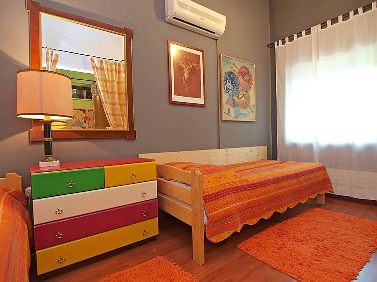 4-room house 130 m2 on 2 levels, south facing position. Living room with satellite TV and DVD. 1 room with curtain with 2 beds (90 cm, length 200 cm), air conditioning. Dining room with satellite TV (flat screen), air conditioning. Exit to the terrace. Open kitchen (4 hot plates, oven, dishwasher, microwave, freezer, electric coffee machine).