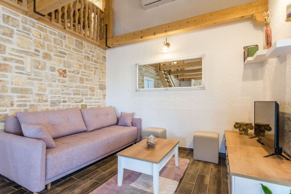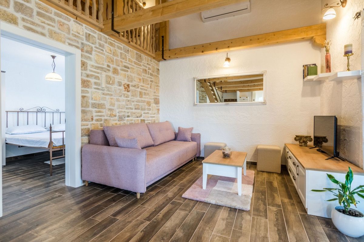The 90 m2 Villa Irena offers accommodation to five persons in two spacious bedrooms, equipped with a double bed. In addition to the two bedrooms, one additional person can sleep on a single bed which can be found up on a gallery. The guests of Villa Irena also have a bathroom with shower on disposal. The charming kitchen is equipped with all appliances and utensils guests of Villa Irena might need for the preparation of delicious meals which can be enjoyed in the stunning dining area. The living room is furnished with a comfortable sofa and smart TV for entertainment of the whole family. As per entertaining facilities, Villa Irena offers its guests Playstation 4, darts and two bicycles for exploring the nearby area.