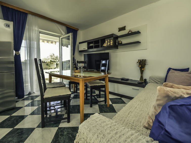 6-room house 90 m2 on 2 levels. Living/dining room with satellite TV (flat screen). Exit to the terrace. 2 rooms, each room with 1 french bed (160 cm, length 200 cm). Open kitchen (4 hot plates, freezer). Shower/WC. Upper floor: living/dining room with satellite TV (flat screen). Exit to the terrace.