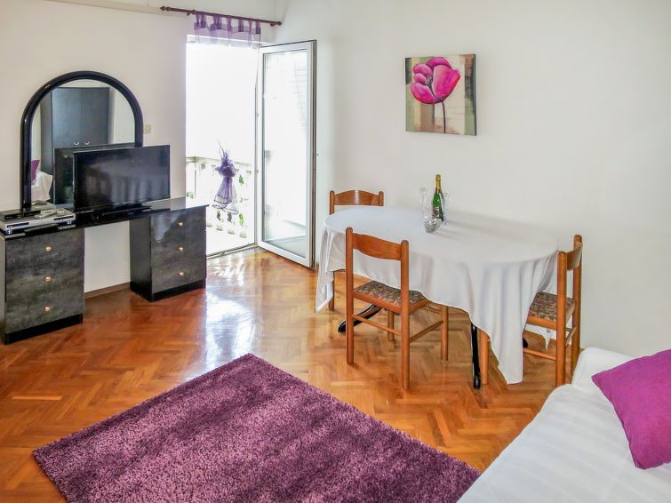 3-room apartment 95 m2 on 1st floor. Living/dining room with 1 double sofabed (150 cm), kitchen corner, shower/WC and satellite TV (flat screen), DVD. Exit to the balcony. Entrance hall with air conditioning. 1 room with 1 french bed, shower/WC and TV. Exit to the balcony. 1 room with 1 double bed and shower/WC.