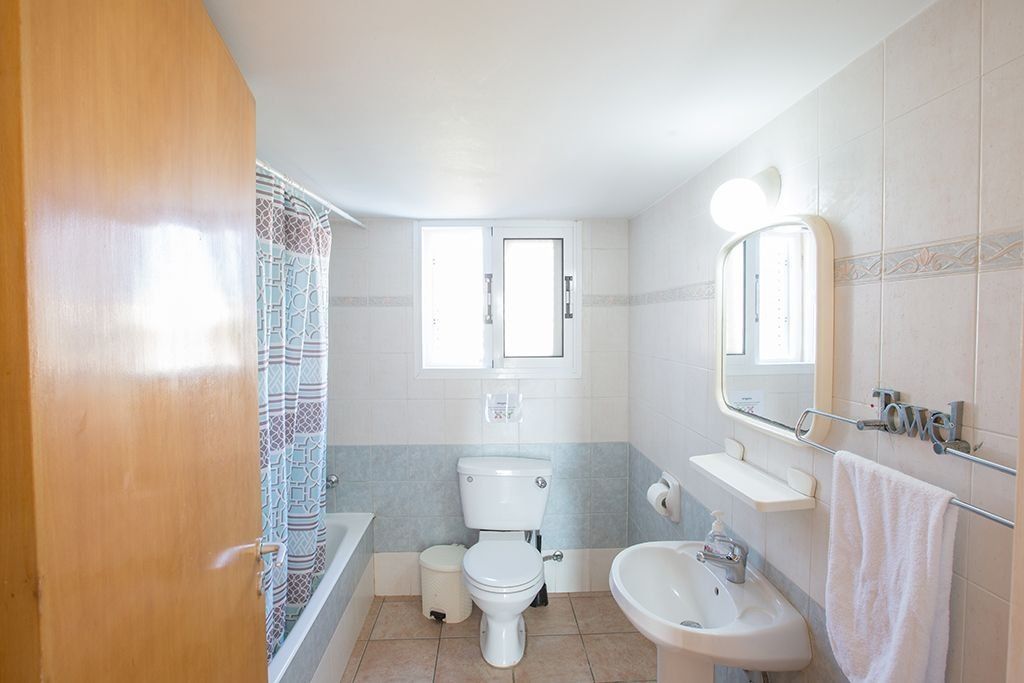 Upstairs, the villa has 4 spacious bedrooms. The master bedroom has a double bed and an en suite bathrooms, There are two more bedrooms with double beds and bedroom 4 has three single beds so the villa accommodates nine people. All bedrooms has fitted wardrobes and bedside cabinets. You will also find the family bathroom which has a bathtub with overhead shower.