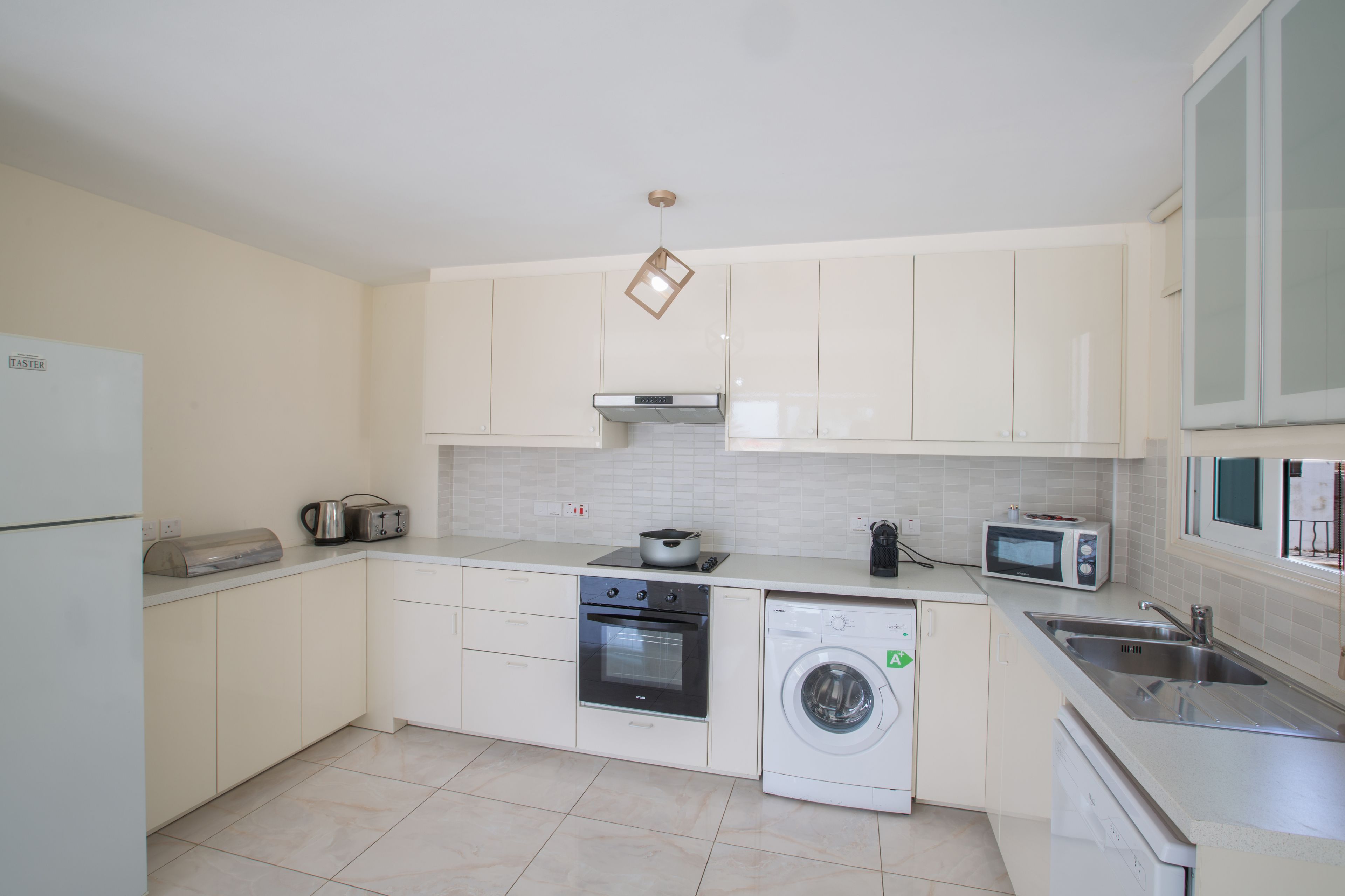 Upstairs, you will find 3 spacious bedrooms; The master bedroom has an en suite bathroom with shower and WC, double bed and patio doors that lead to the shared balcony that overlooks the sea views. Bedroom 2 has a double bed and private balcony, and bedroom 3 has two single beds and access to the shared balcony. All bedrooms have fitted wardrobes and bedside cabinets