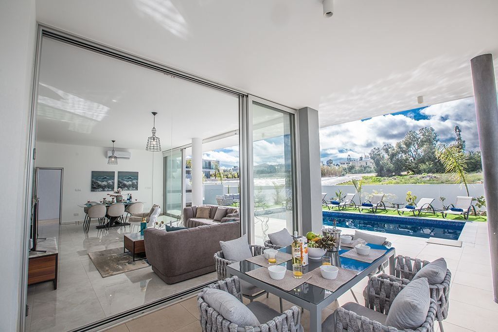 This Brand New contemporary villa is located in the popular resort area of Protaras and is just a 5 minute walk to the nearest beach and with a variety of bars, restaurants and shops close-by, this is great central location for getting around without the need for a car. The villa is newly built and fully equipped with everything you need to ensure a perfect self-catering stay.