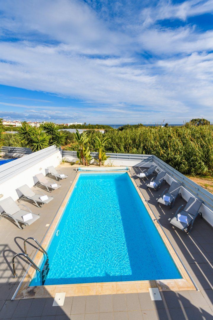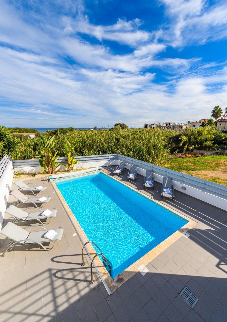 During downtime, spread out back home and revel in your scenic surroundings. The pool is the perfect spot to while away the afternoon – jump in and cool off or lounge on the sunbeds with a glass of wine in hand. When you grow peckish, fire up the grill and dine alfresco on chicken souvla and pita with tzatziki. Later on, decompress from the day on the sumptuous sofa before retiring to the comfortable bedrooms for a good night's sleep. We think this pad would be a fantastic fit for a family or group of friends.