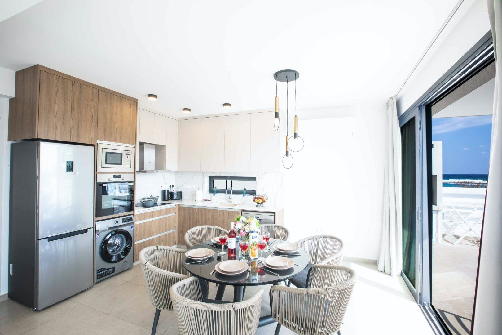Take the short 100-metre stroll from this home and you’ll find yourself on Trinity Beach. It’s also within walking distance of Protaras’ restaurants and shops – making this a great option for an easy-going coastal escape. And for relaxing days at home, there’s a private pool, a roof terrace and plenty of space for groups to stretch out. This won’t be the best option for those seeking privacy and seclusion due to the location, but it’s a great choice for families seeking ease and convenience – your host can help organise a range of child-friendly amenities.