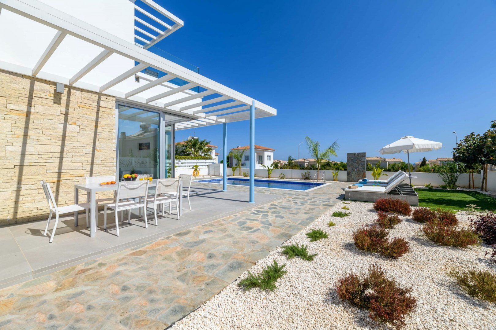 With a pretty panorama over the resort town of Protaras, this bright villa is placed 350 metres away from Mimosa Beach. Situated on popular Green Bay, you'll find nearby coastal hiking trails and Cyclops Cave awaiting – the legendary den of the Greek mythological creature. Not only that, you'll discover plenty of bars and restaurants on your doorstep, as well as scuba diving and windsurfing spots.
