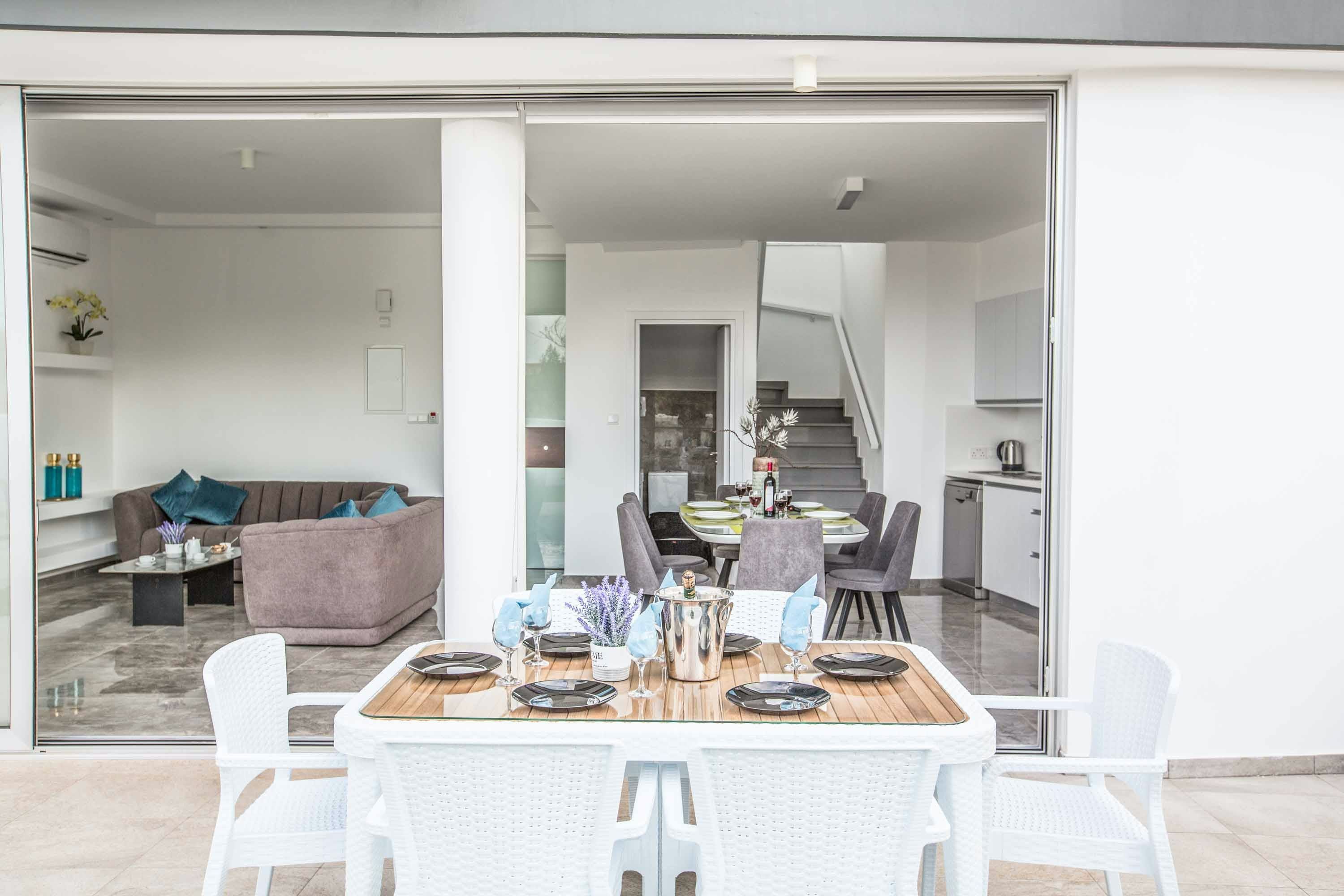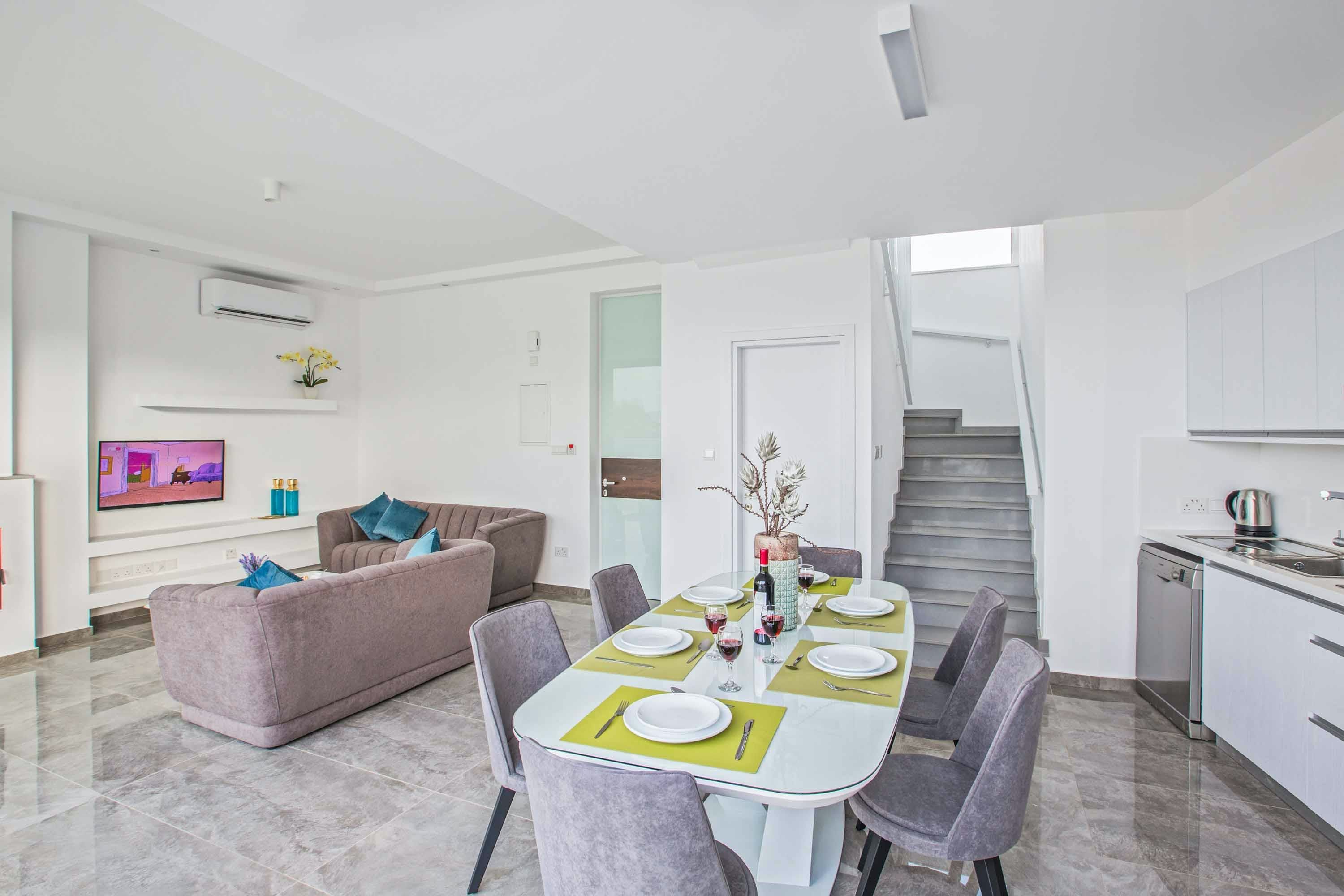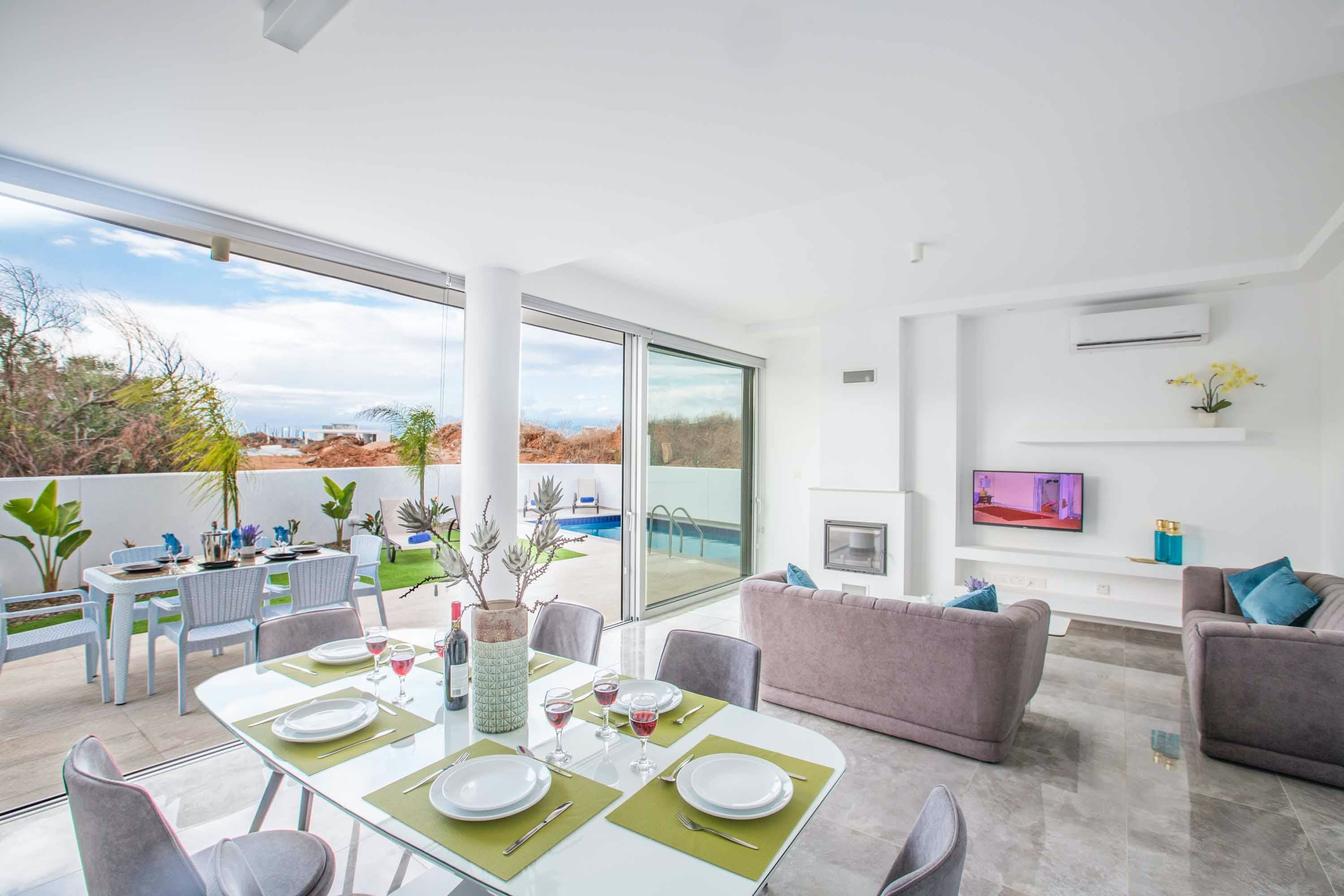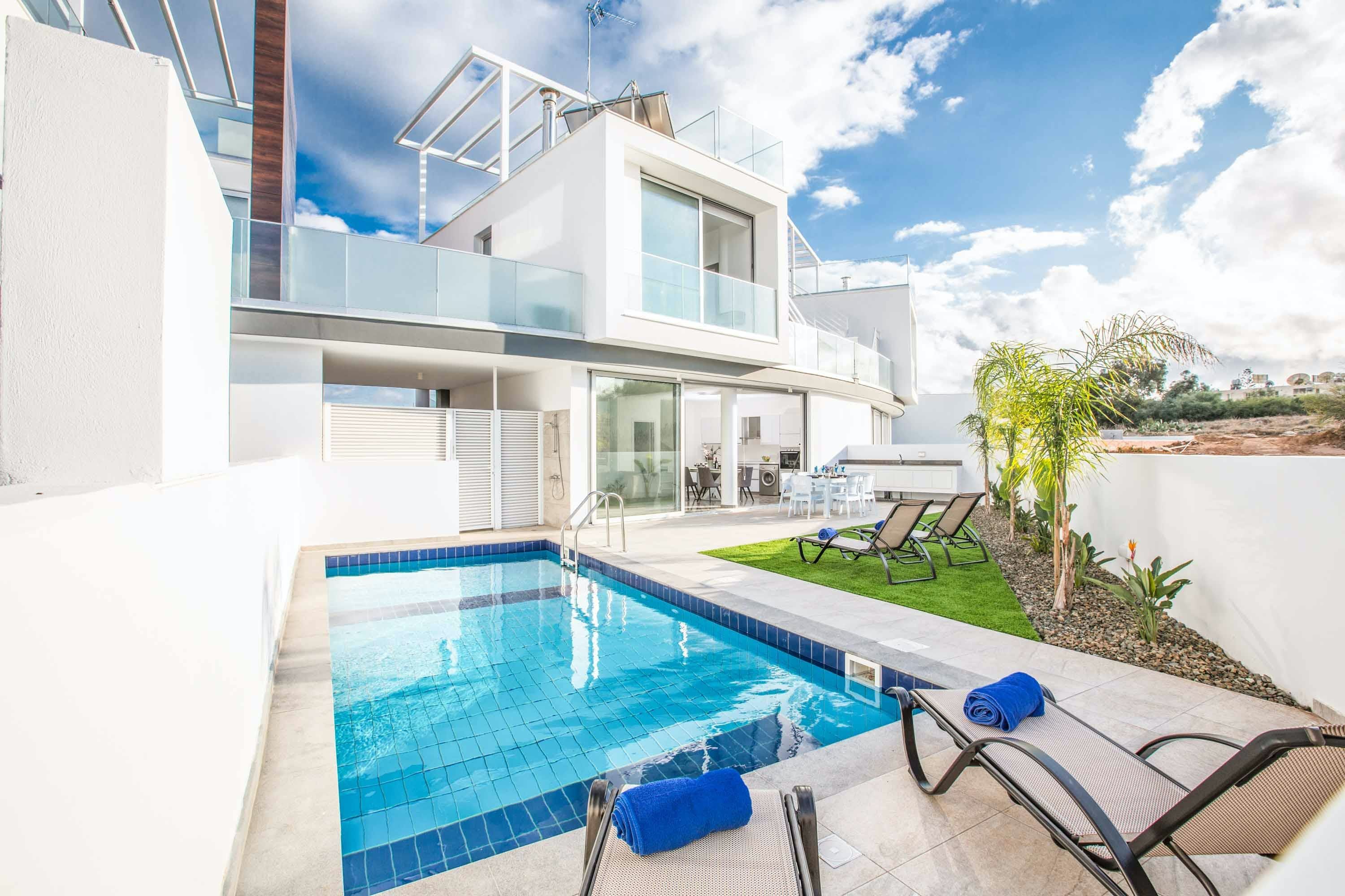 Located around a five-minute stroll from the centre of Protaras and within walking distance of Vrissiana Beach, this villa is the perfect retreat for small families and couples. The home features an enclosed garden with a private pool and a roof terrace for drinks alfresco. Head inside to find an open-plan living space, comfortable enough for both entertaining and relaxing. Upstairs, the bedrooms aren’t the cosiest, but there’s plenty of storage, and the beds are comfortable.
