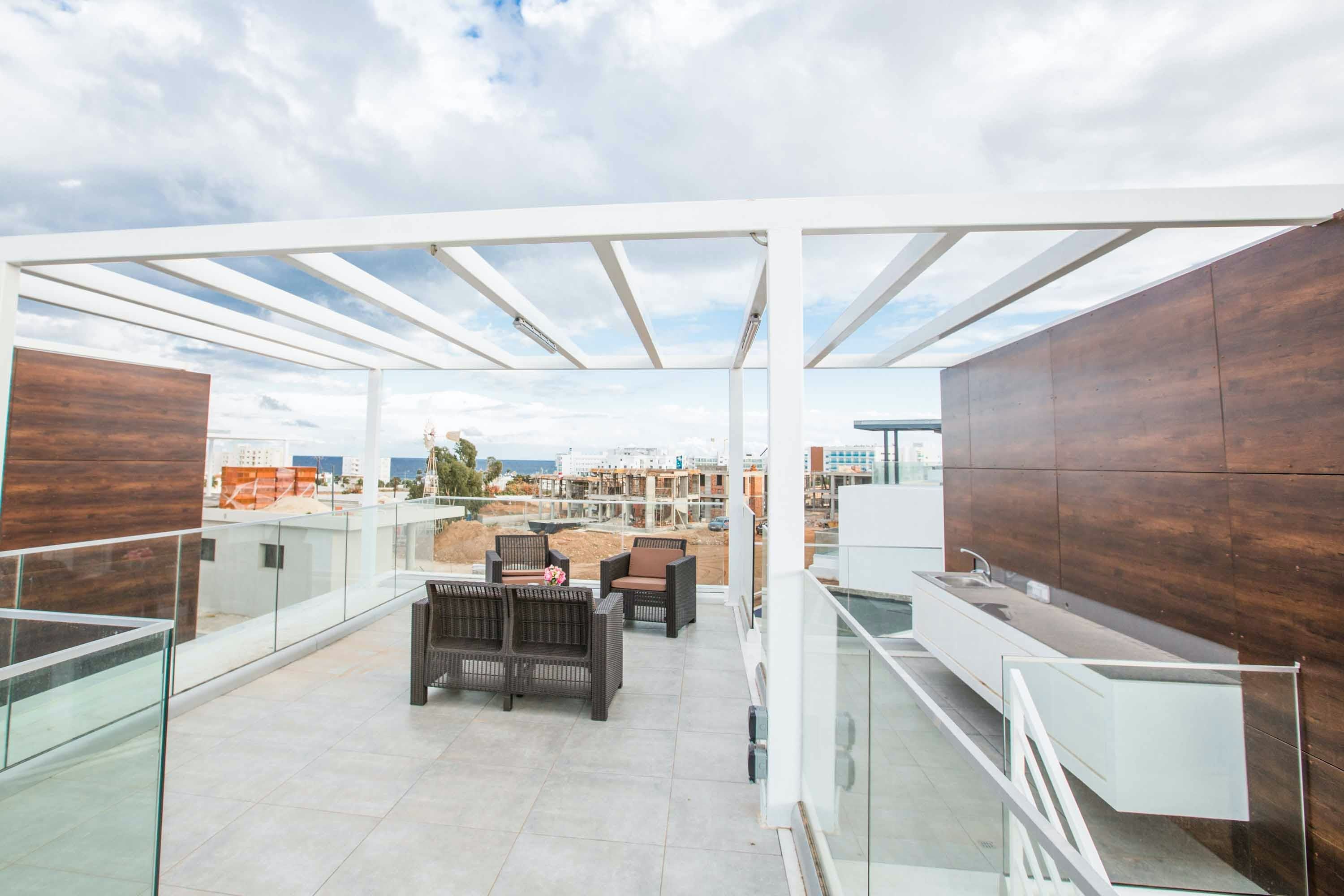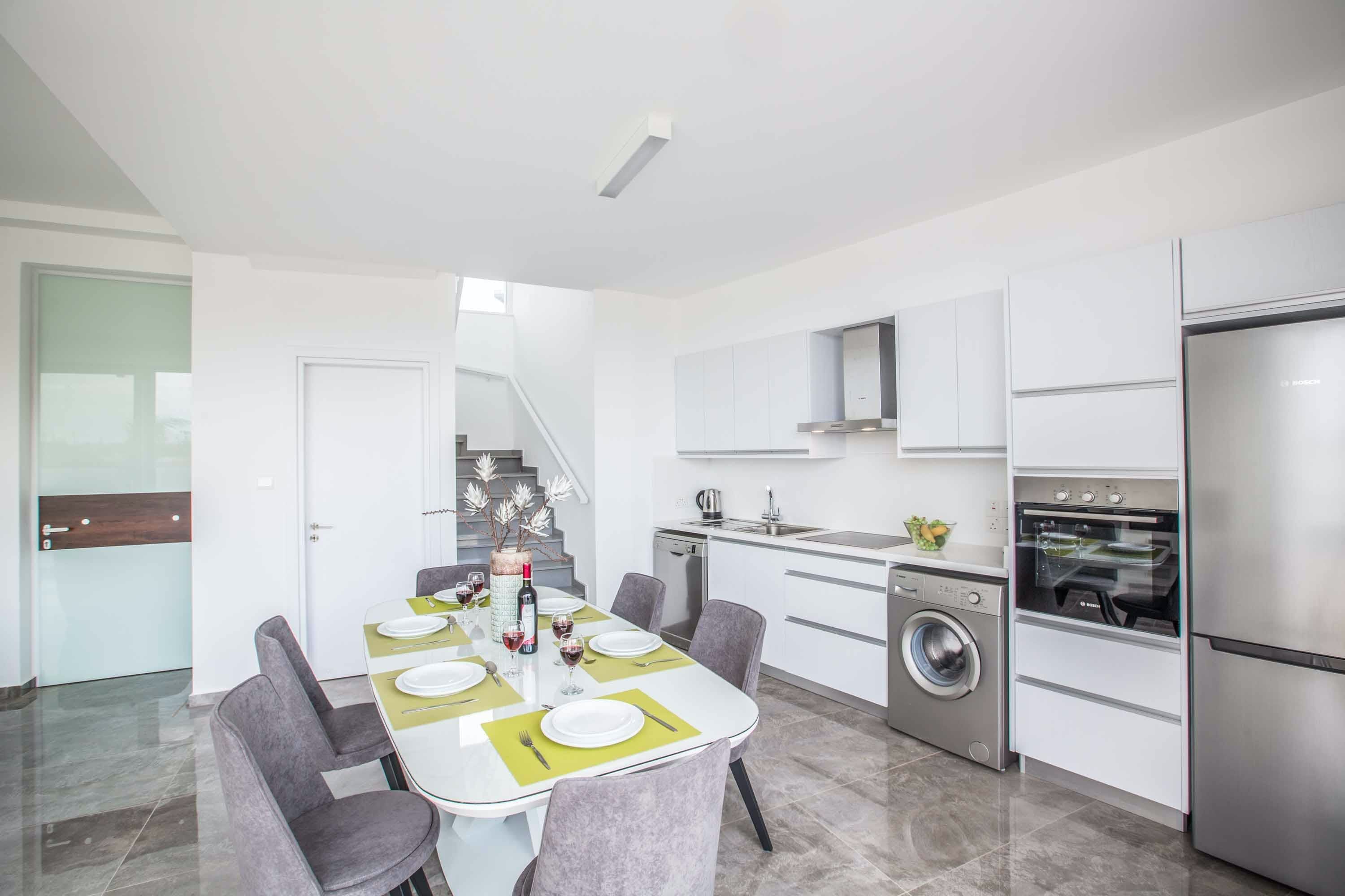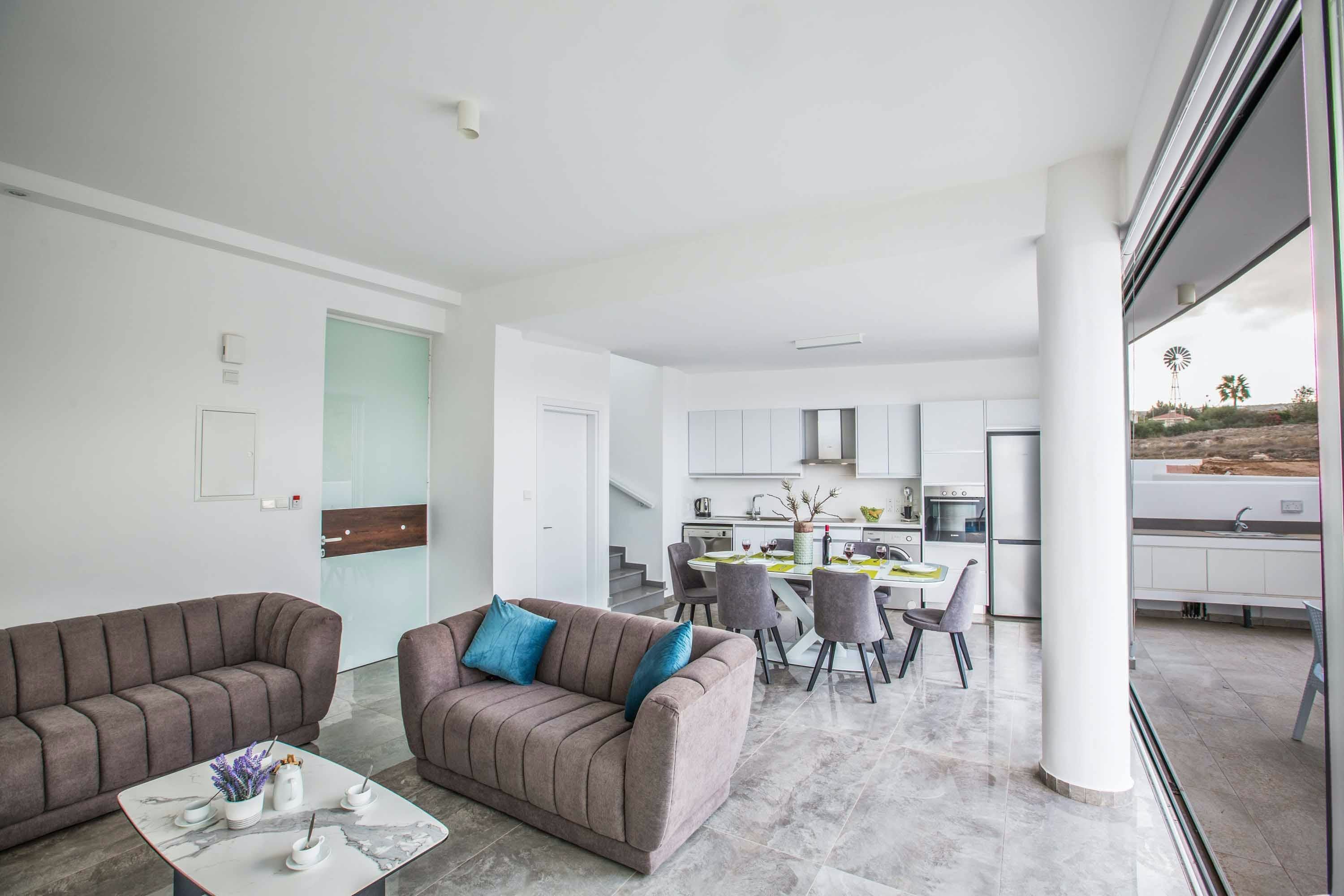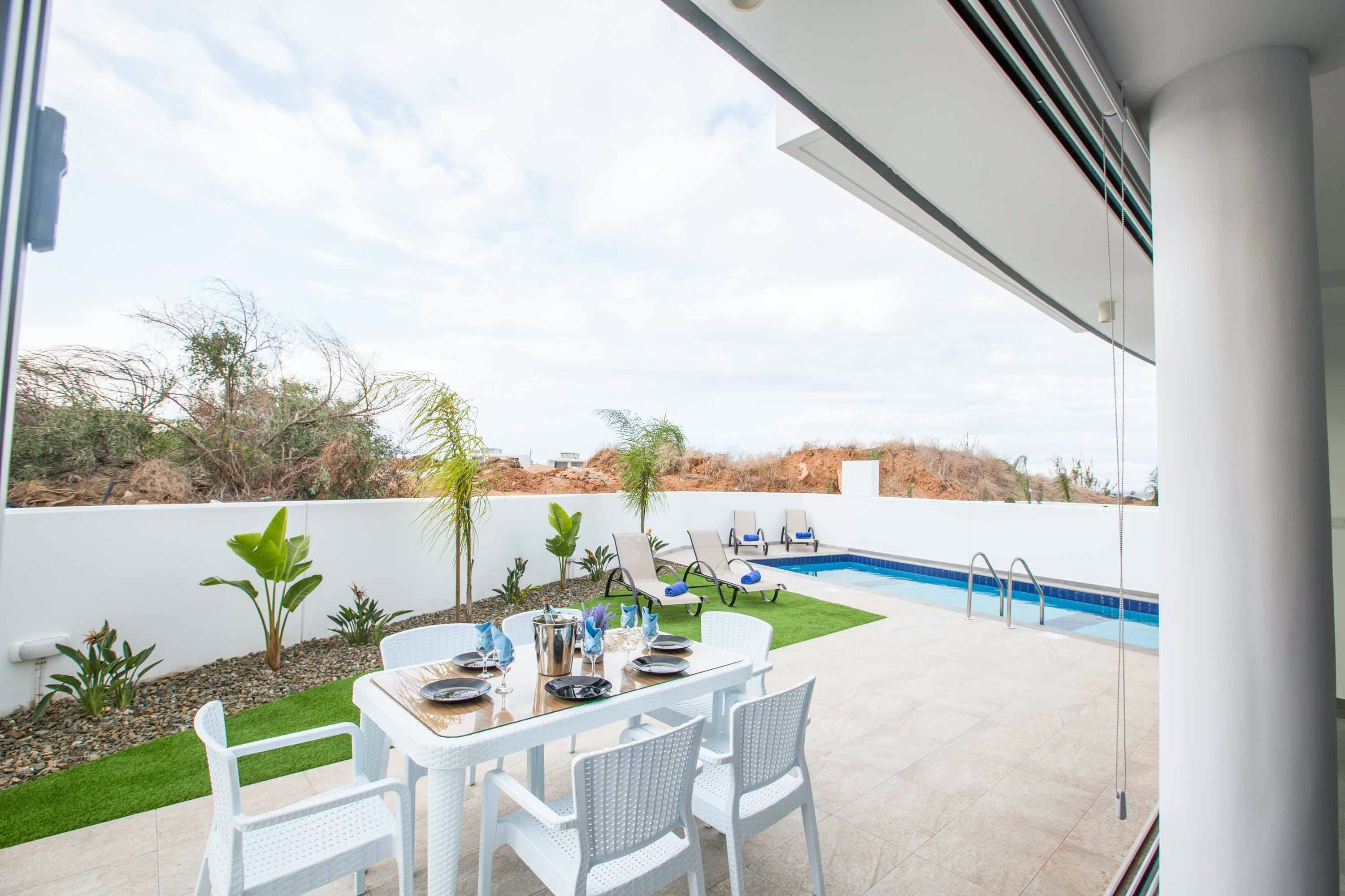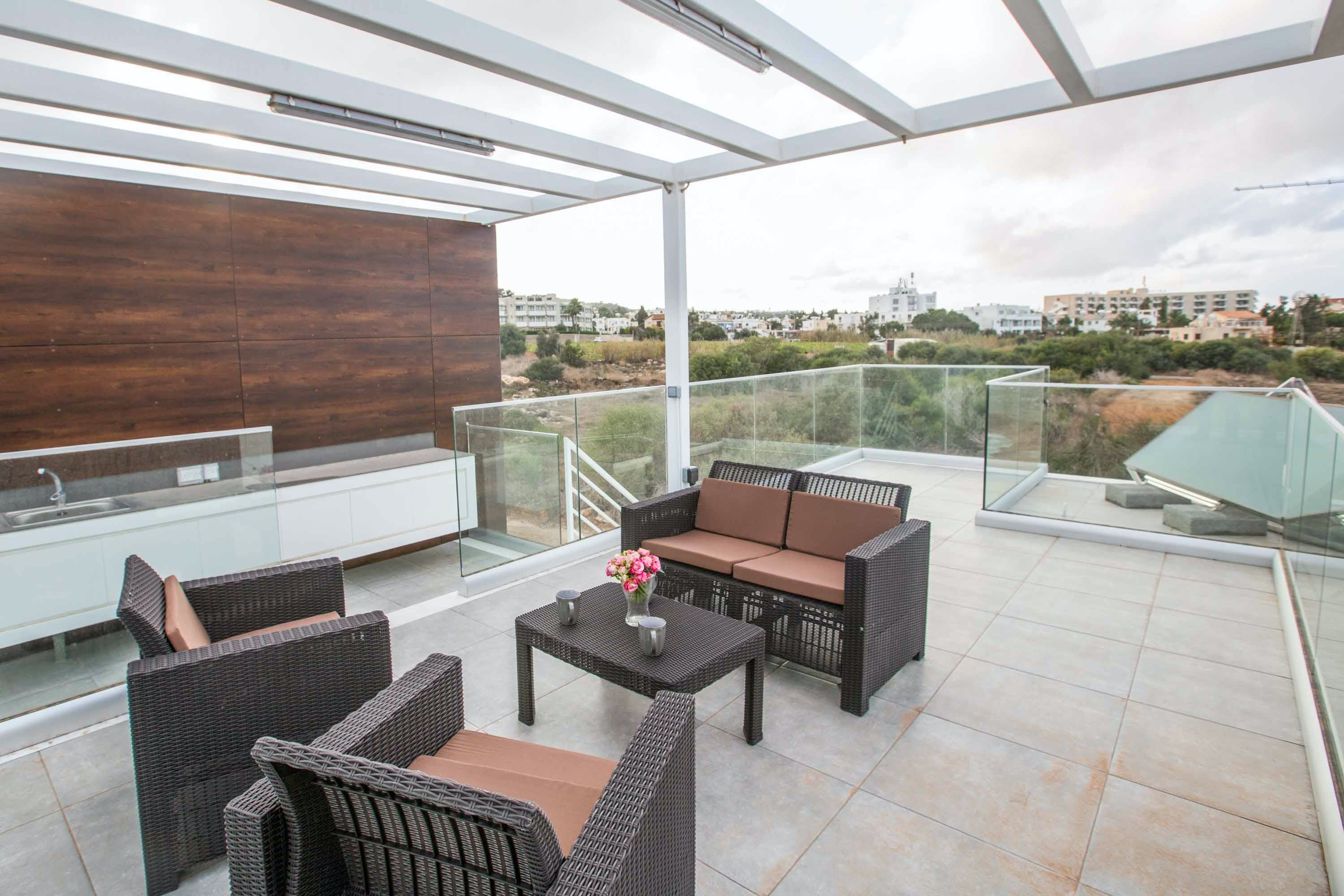 Located around a five-minute stroll from the centre of Protaras and within walking distance of Vrissiana Beach, this villa is the perfect retreat for small families and couples. The home features an enclosed garden with a private pool and a roof terrace for drinks alfresco. Head inside to find an open-plan living space, comfortable enough for both entertaining and relaxing. Upstairs, the bedrooms aren’t the cosiest, but there’s plenty of storage, and the beds are comfortable.