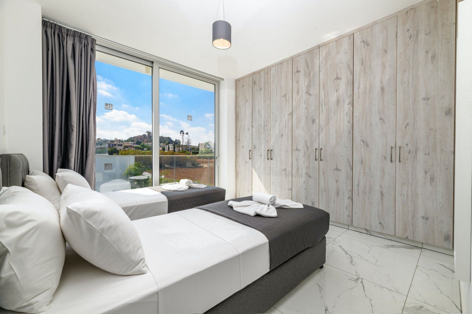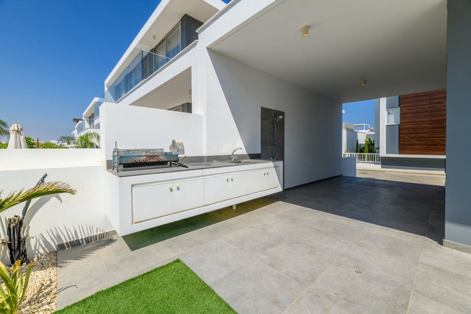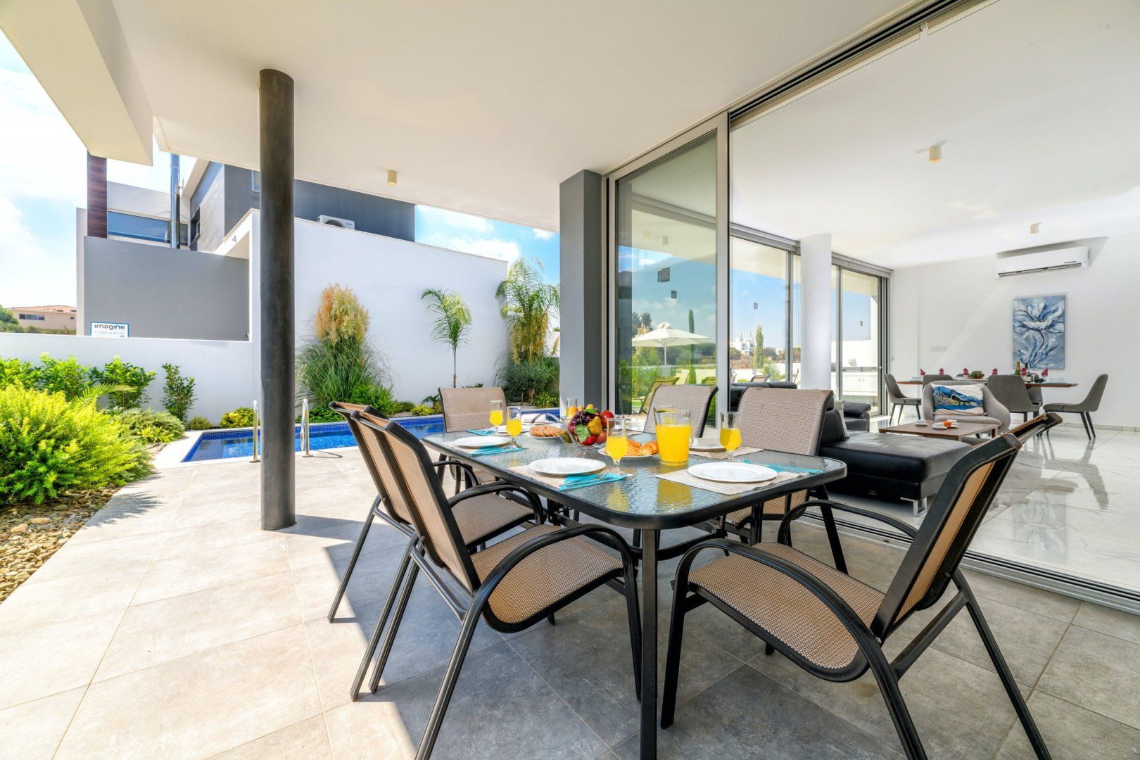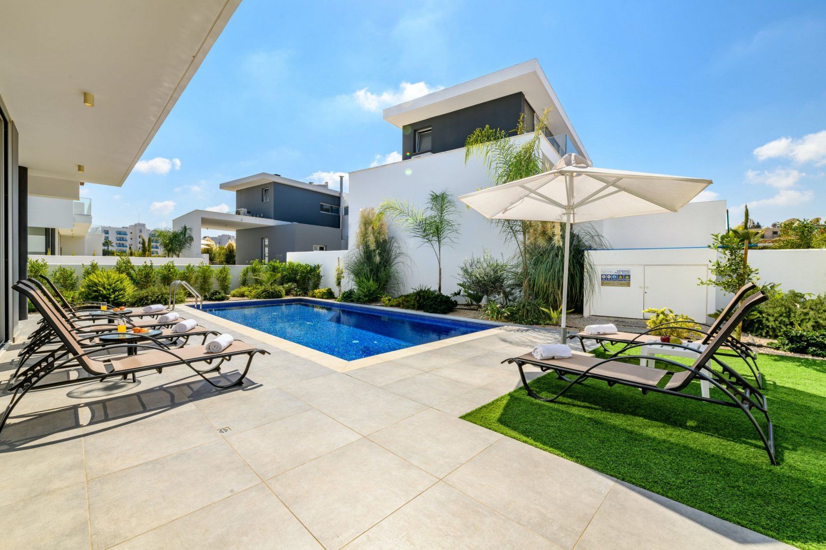 With plenty of sun-drenched outdoor space to call your own here, it's more than likely, you'll wish to spend much of your time outside soaking up the Cypriot sun. However, it's safe to say you'll find the contemporary living space indoors just as enticing. Floor-to-ceiling bi-fold doors invite in a free flow of natural daylight that bounces through the space with good vibes and a summer spirit. Meanwhile, the minimal designs in a white and grey colour scheme encourage guests to relax in a fuss-free environment far away from the stresses of daily life.