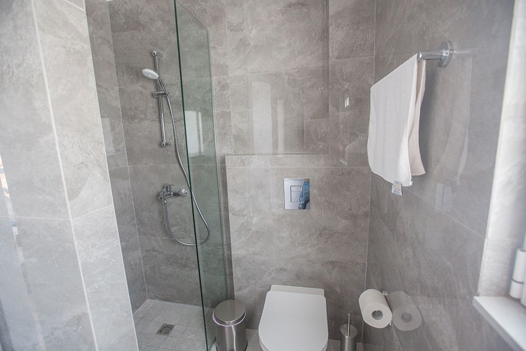 Upstairs, you will find the four modern and spacious bedrooms, all complete with fitted wardrobes, bedside cabinets and widescreen TVs. The master bedroom has an en suite bathroom with a shower and WC, double bed and offers sea views. Bedrooms 2 and 3 both have two single beds and bedroom 4 has a double bed as well as an en suite bathroom with a shower and WC The main bathroom with shower and WC is also on this floor.