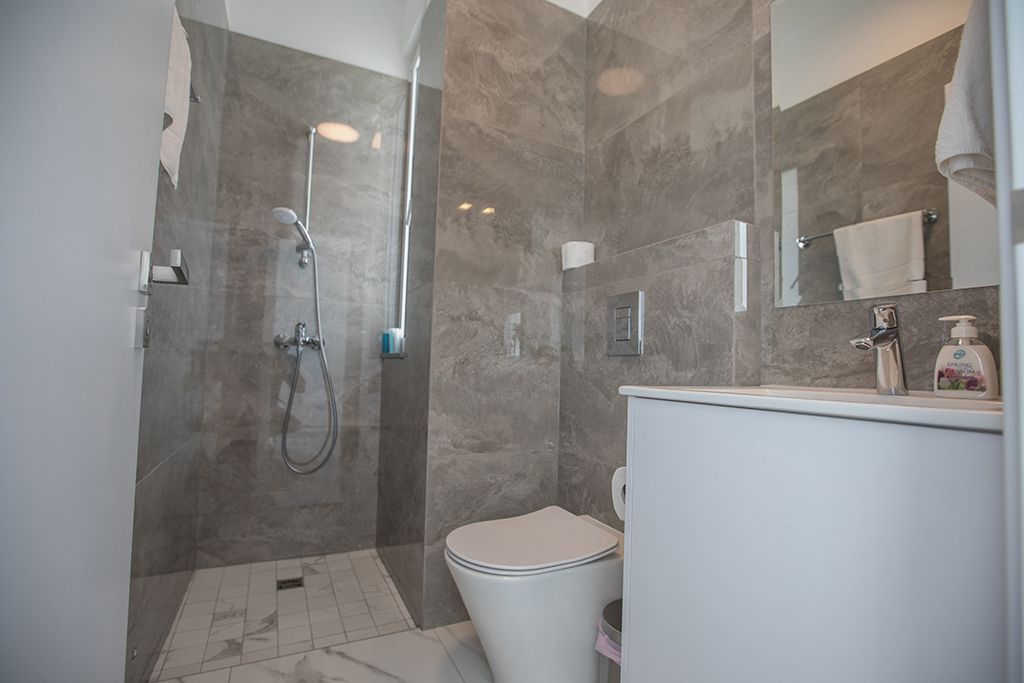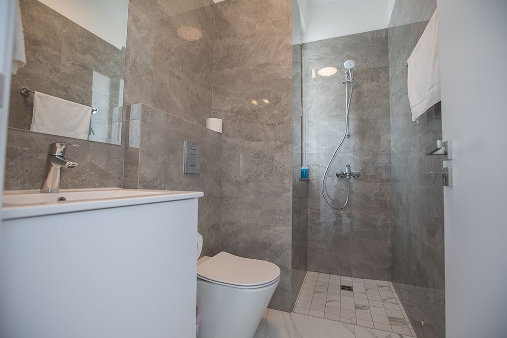 Upstairs, you will find the four modern and spacious bedrooms, all complete with fitted wardrobes, bedside cabinets and widescreen TVs. The master bedroom has an en suite bathroom with a shower and WC, double bed and offers seaviews. Bedrooms 2 and 3 both have two single beds and bedroom 4 has a double bed as well as an en suite bathroom with a shower and WC The main bathroom with shower and WC is also on this floor