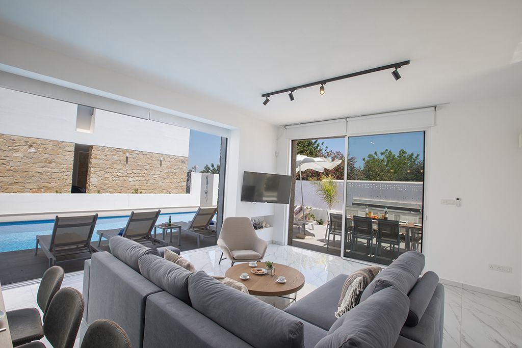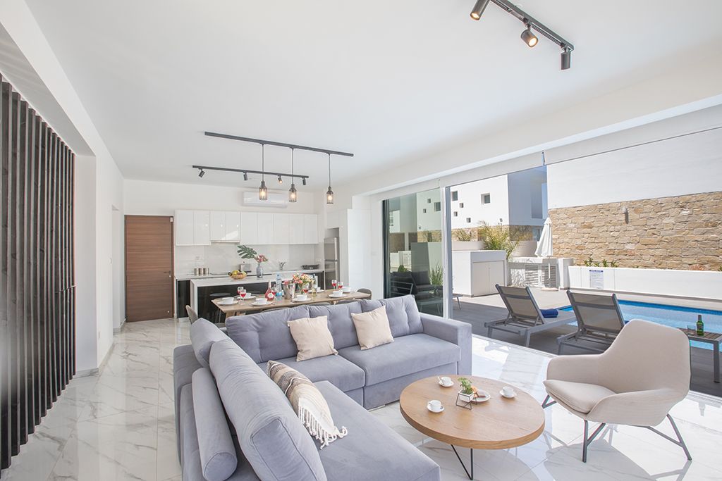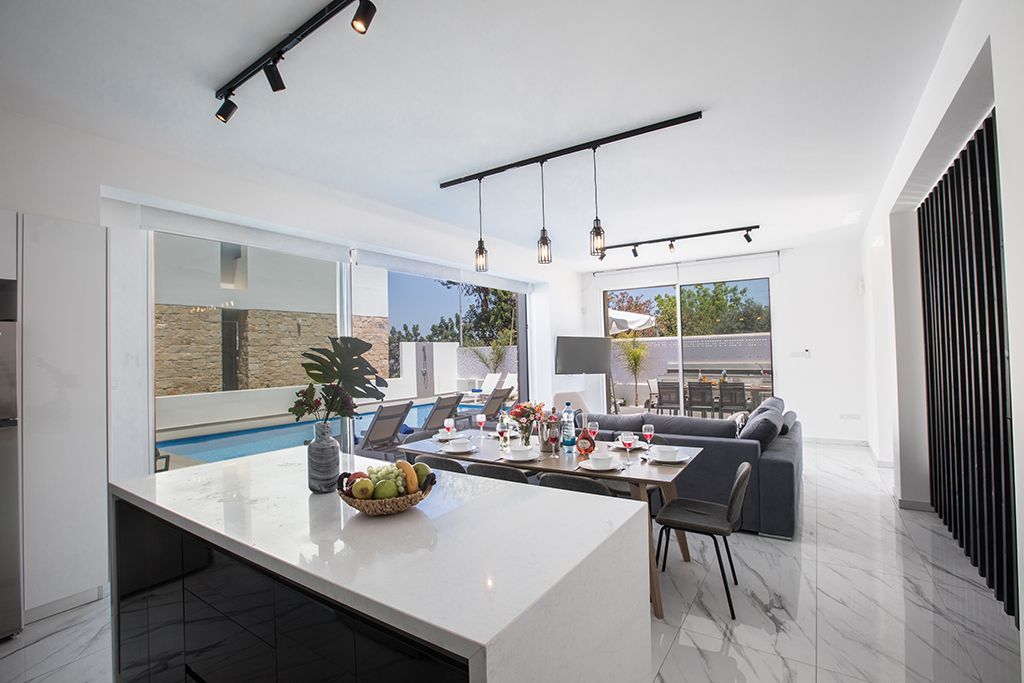This brand new, luxurious villa is located in the popular resort area of Protaras and is just a 5 minute walk to the beaches, shops, restaurants and bars. The villa is fully equipped with brand new furniture and fittings to ensure a comfortable and relaxing self-catering stay
