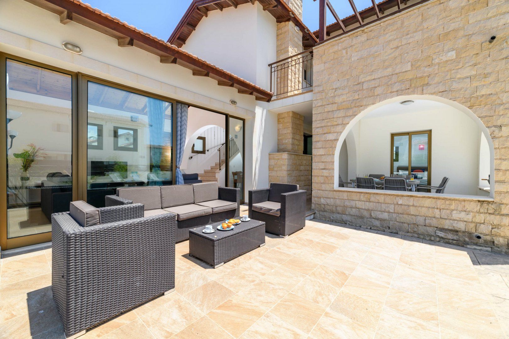 Bright and modern, this beautiful villa blends more classic Cypriot architecture with contemporary design for a striking first impression. Admire the curves of every arch as you wander around the home trying to find your favourite spot for reading.