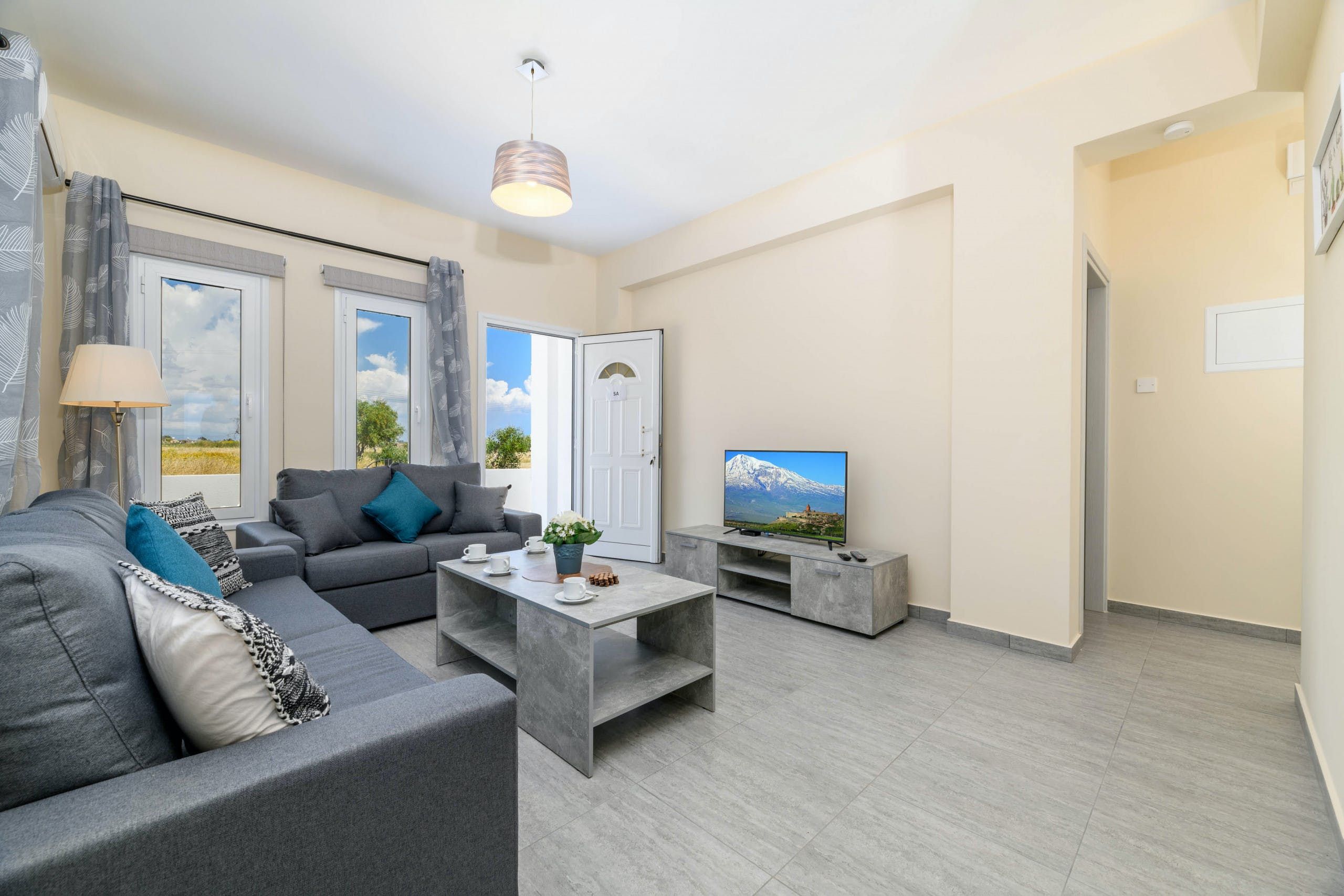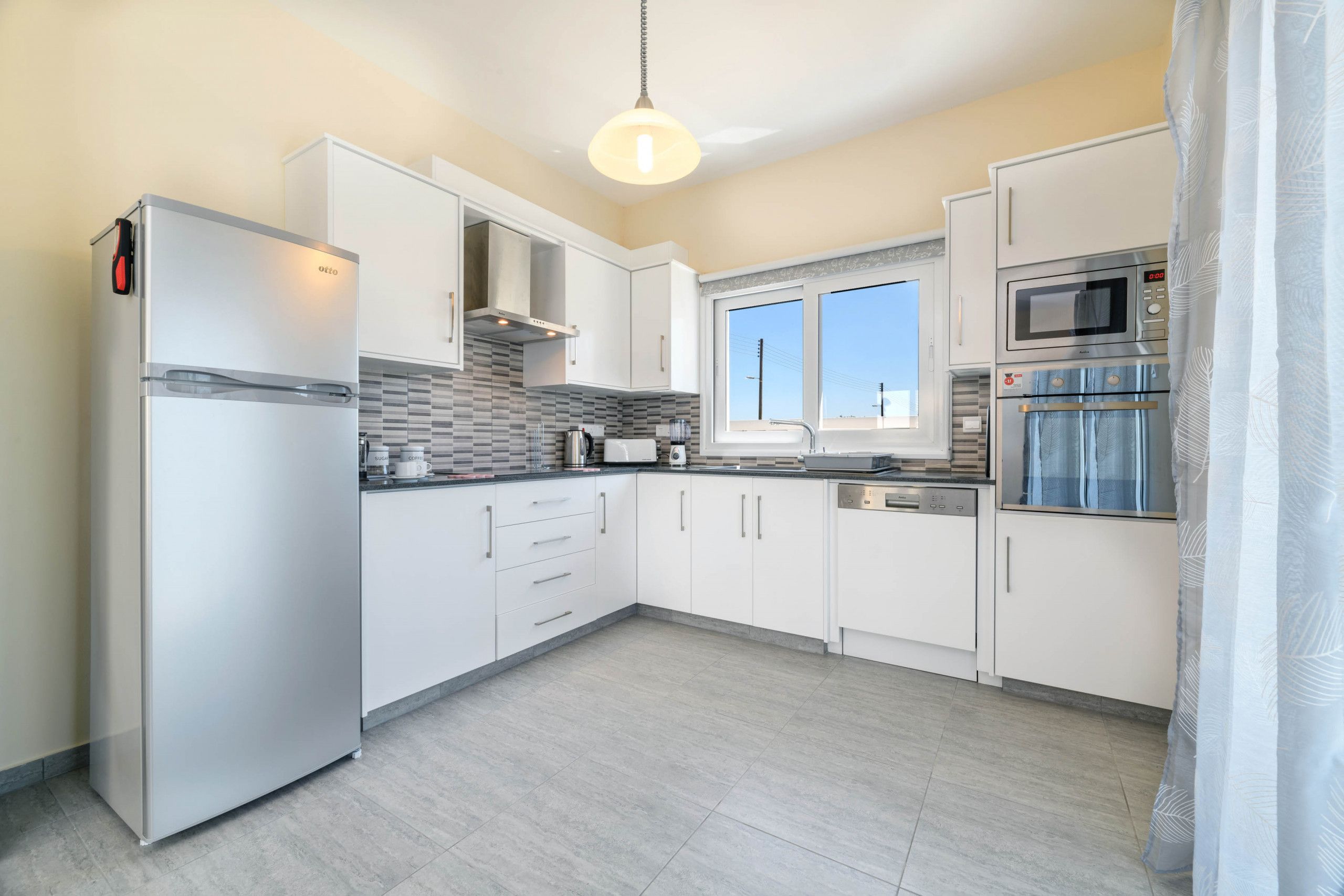 In the quiet village of Xylofagou, just a ten-minute drive from the vibrance of Ayia Napa, this modern villa waits to welcome you home. With a neutral palette throughout, the whole space feels open and inviting from the moment you step foot inside. A sleek kitchen promises to test the culinary skills of the nominated cook – rustle up a tasty treat and head out onto your sunny terrace to enjoy your food alfresco. Countless hours could be spent in this outdoor space, with the pool taking centre stage and enticing you in for a refreshing dip and some respite from the Cypriot heat. After a little time in the water, climb out and head to the sun lounger to dry off, all you need is a good book and time will slip by effortlessly.
