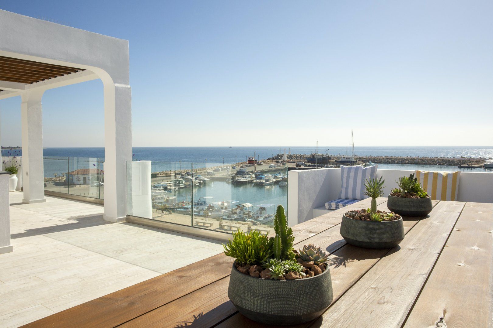 Overlooking the marina and the Mediterranean, this apartment boasts uninterrupted sea views from its wrap-around outdoor terrace – with sunbeds, a spacious dining area, and a barbecue providing everything you need for alfresco entertaining. Sunlight streams into the open living area and the main bedroom through floor-to-ceiling sliding doors. On your doorstep, the sleepy fishing village of Zygi is renowned for its fresh seafood, and you'll find authentic restaurants and a beach with safe swimming a short walk away. Your host has thoughtfully provided bikes, a paddle board, kayaks and snorkel gear for those who'd like to explore under their own steam. Alternatively, jump in the car for the ten-minute journey to Limassol and wander its atmospheric old town.