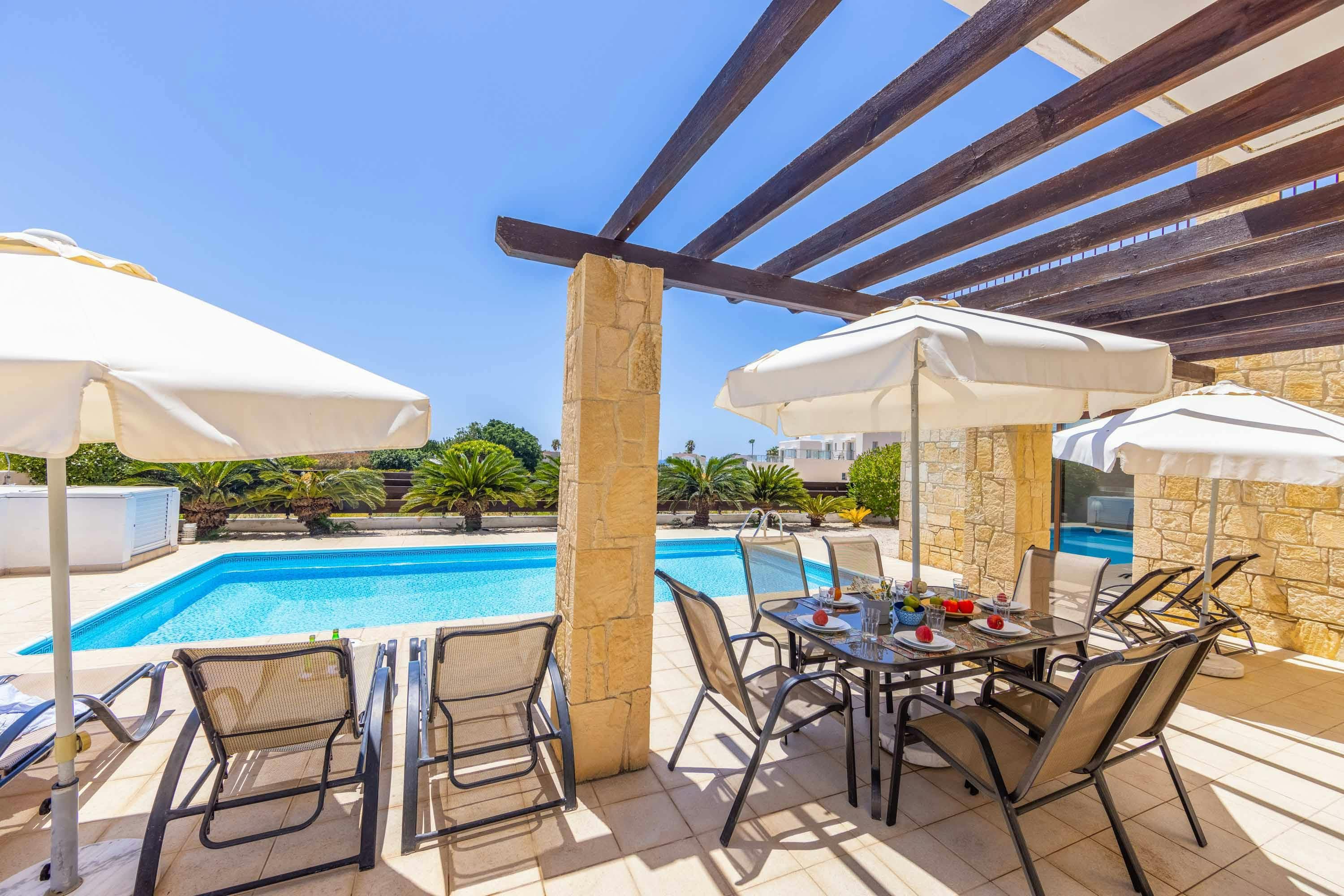Looking for a convenient Cypriot getaway? Look no further. Located less than 500 metres from a sandy beach and local restaurants, this villa is ideal for families who don’t want to hire a car – everything you need is close to hand. You’ll have a private swimming pool to cool off in, and a pergola with a built-in barbecue, perfect for dining under the stars. The villa is simple in style, a fuss-free base for a relaxing break in the sun. If you do want to explore further afield, beautiful Paphos is just a fifteen-minute drive away.