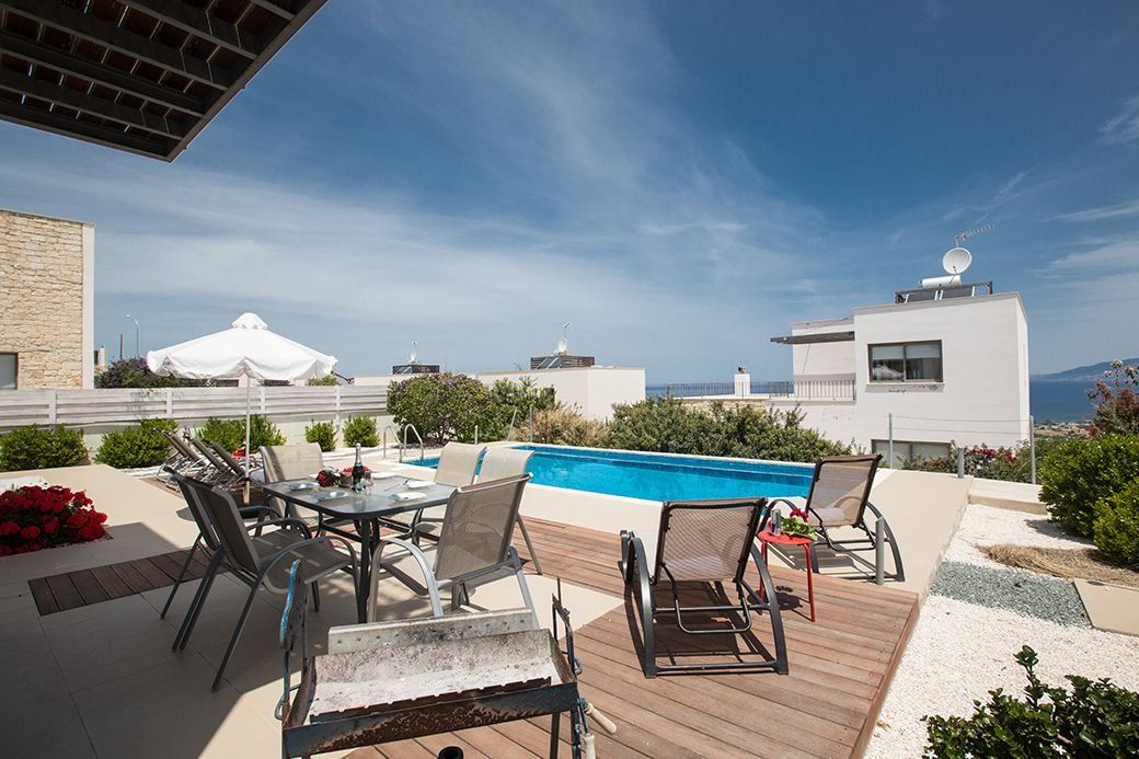 Just arriving at this villa and seeing the magnificent views over Chrysochou Bay and Latchi Harbour will without doubt put you in the mood to enjoy the holiday of a lifetime.The villa is located within the scenic setting of the Akamas Peninsula in Southern Cyprus, nestled on a sun-drenched hillside with breathtaking views.Take a deep breath and feel the ambience of this amazing villa as soon as you step inside. The villa is modernly furnished to a high standard with furnishings carefully hand-picked with the help of celebrity interior designer Linda Barker and is complete with a private pool and landscaped garden.