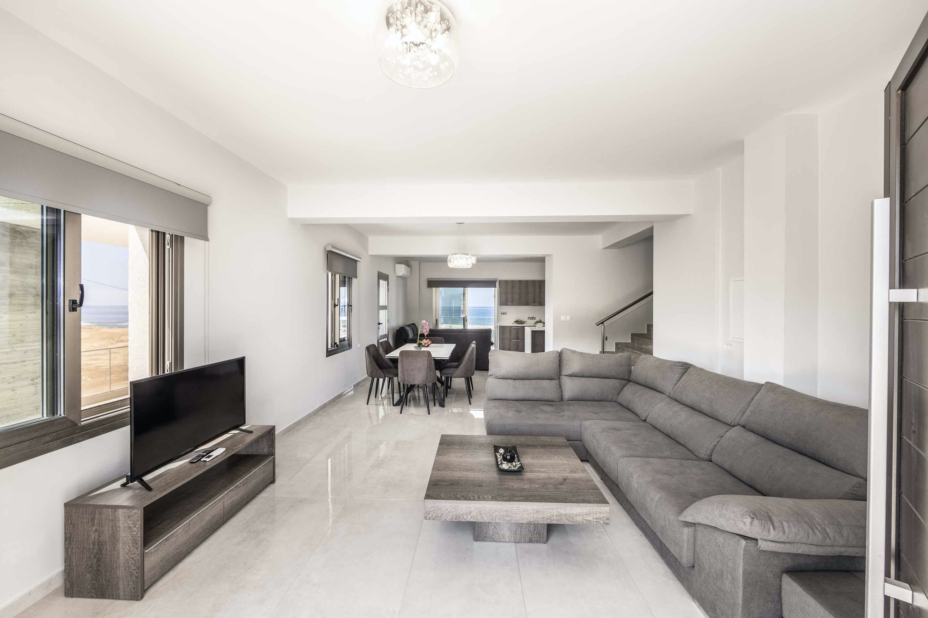 Boasting pristine panoramas of the Mediterranean Sea, this waterfront villa absolutely nails it when it comes to location. Unsurprisingly, we reckon most of your time will be spent outdoors. There's a private pool surrounded by lounge chairs, a barbecue for alfresco dinners, and balconies with unbeatable views. Inside, the pared-back design might not be as eye-catching, but it lets the scenery do all the talking. We think it's comfortable, contemporary, and convenient for groups. Location-wise, Pomos is a quiet fishing village known for its laid-back atmosphere and pretty beaches. It's ideal for those seeking a calm, coastal stay.