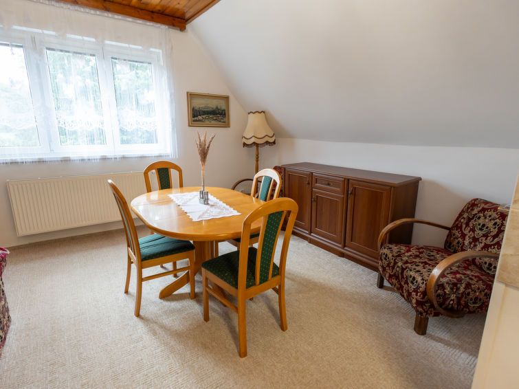 "Zimořský domek", 2-room house on 2 levels. Open living/sleeping room with 1 double bed, dining table and TV. Small kitchen (2 hot plates, kettle, microwave). Shower/WC. Upper floor: living/sleeping room with 1 double bed and TV. Small kitchen (2 hot plates, kettle, microwave). Shower/WC.
