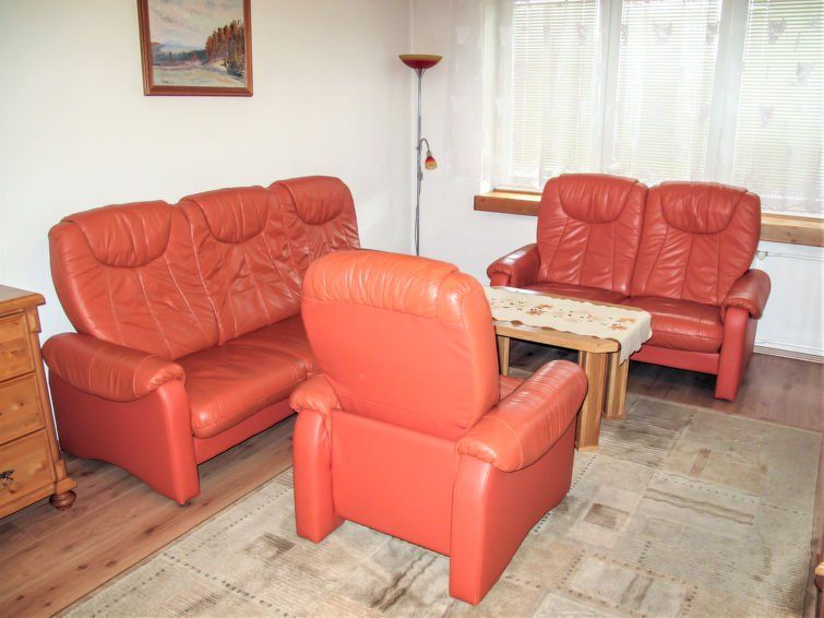 "Horní Adršpach", 2-room apartment 55 m2, on the upper ground floor. Practical and comfortable furnishings: living room with 1 double sofabed and satellite TV (flat screen). 1 room with 1 bed, 1 double bed and 1 pull-out bed. Kitchen (oven, dishwasher, 4 ceramic glass hob hotplates, kettle, microwave).