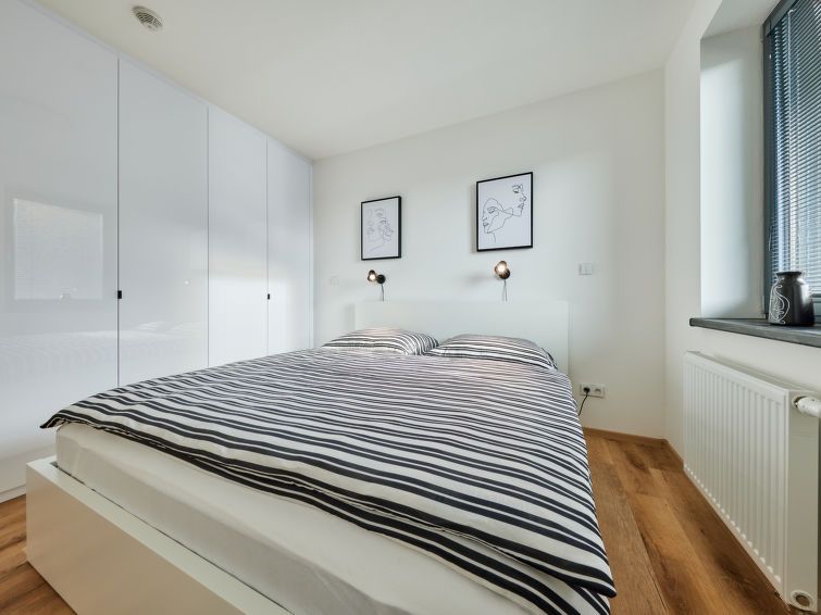 2-room apartment on the ground floor. Very beautiful and modern furnishings: living/sleeping room with 1 double sofabed and TV. 1 room with 1 double bed. Kitchenette (oven, dishwasher, 4 ceramic glass hob hotplates, toaster, kettle, microwave, freezer, electric coffee machine) with dining nook.
