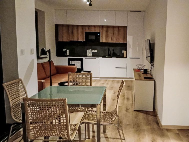 Very nice apartment, apartment door stiff and noisy, no foreign TV channels available, no insect screens on the windows, wobbly chair. The housing complex is not yet finished. Location rather unfavorable, you always need the car.