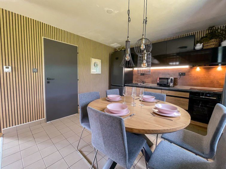 4-room house 100 m2 on 2 levels. Bright, comfortable and cosy furnishings: open living room with 1 sofabed and satellite TV. Exit to the terrace. Kitchen (oven, dishwasher, 4 induction hot plates, kettle, microwave, freezer, electric coffee machine) with dining table. Sep. WC. Upper floor: 3 rooms, each room with 2 beds.