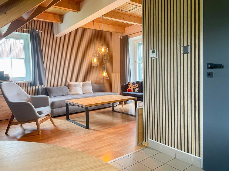 Equipped with all conveniences and sufficiently furnished. The mattresses were quite hard and the layout in the kitchen cabinets was very messy. At the reception there appeared to be little knowledge of the English language and no German. In Vrchlabi at 8 km there are many shops and restaurants. We have used the many beautiful hiking trails in the area; definitely recommended!