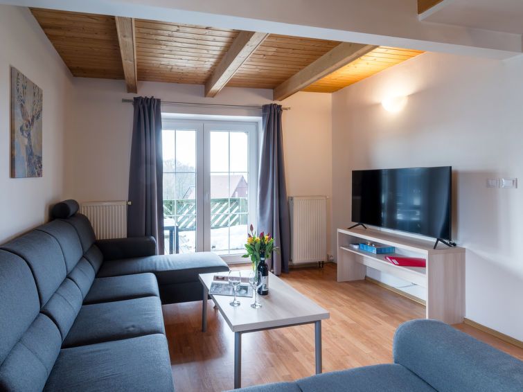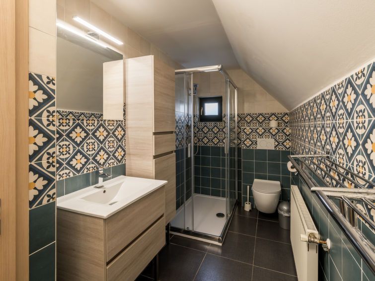 It was really very comfortable and we spent a great week, ski areas very accessible by car and bus, good service and no problems. Thanks very much! House 55: 3 bedrooms with 2 beds each + bathroom upstairs; open kitchen and living area with small toilet, entrance area + storage room below; Balcony; Everything clean and nicely furnished.