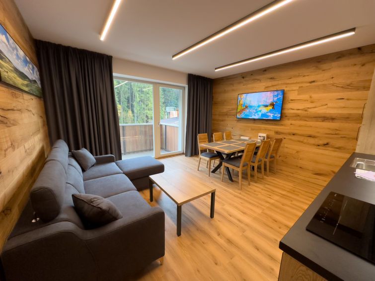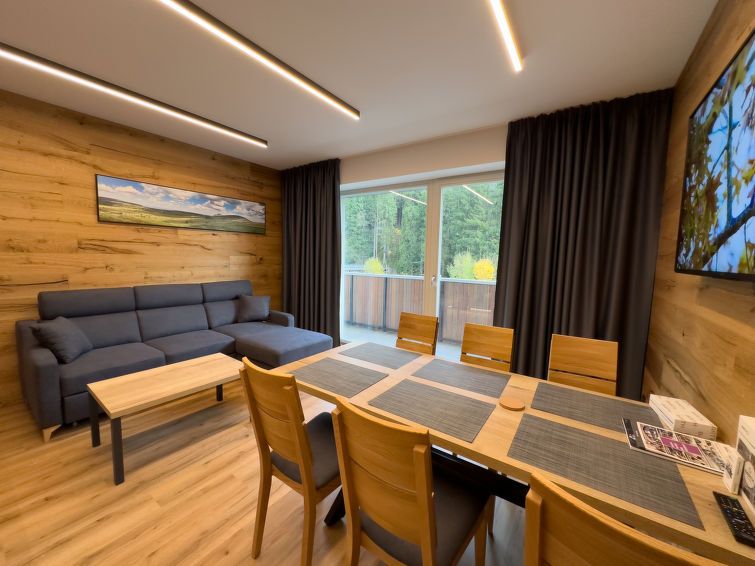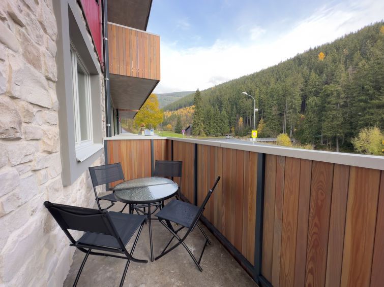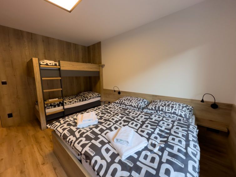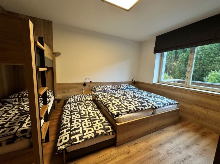 "Rezidence Krakonoš 105", 2-room apartment on the ground floor. Spacious, luxurious furnishings: living room with dining table and TV. 1 room with 1 x 2 bunk beds, 1 double bed and 1 pull-out bed. Kitchenette (oven, dishwasher, 4 ceramic glass hob hotplates, microwave, freezer, electric coffee machine).