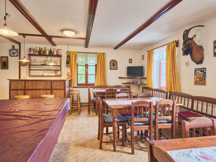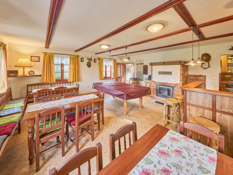 6-room house 270 m2 on 2 levels. Renovated in 2014, beautiful and stylish furnishings: playroom with dining table. Living room with Scandinavian wood stove, dining table, dining nook, bar, satellite TV and radio. 1 room with 4 beds and shower/WC. Kitchenette (4 hot plates, dishwasher, toaster, kettle, microwave, electric coffee machine).