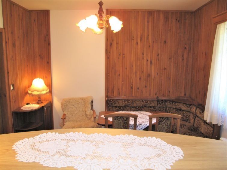 3-room house 50 m2, on the ground floor. Stylish furnishings: living/dining room with dining table, satellite TV and DVD. 1 room with 2 beds. 1 room with 2 beds. Kitchenette (4 ceramic glass hob hotplates, toaster, kettle, microwave, electric coffee machine). Shower, sep. WC. Electric heating.