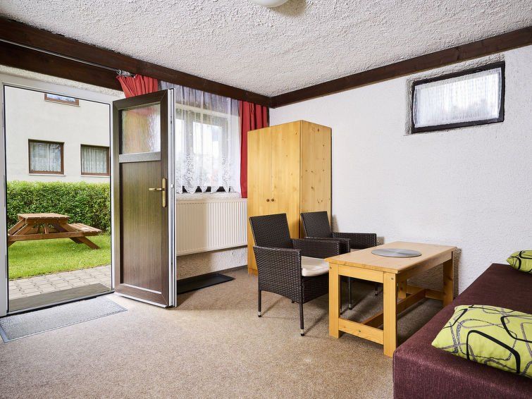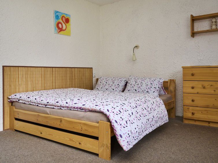 "Harrachov Pool & Garden", 3-room apartment 110 m2, on the ground floor. Living room with 1 double sofabed. 1 room with 1 bed and 1 double bed. 1 room with 1 bed, 1 double bed and open-hearth fireplace (only for decoration). Kitchen (4 gas rings, kettle, microwave) with dining nook and satellite TV.