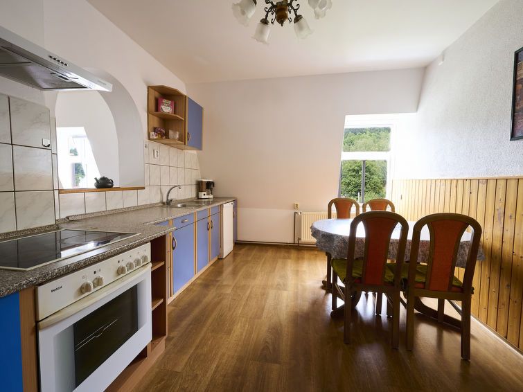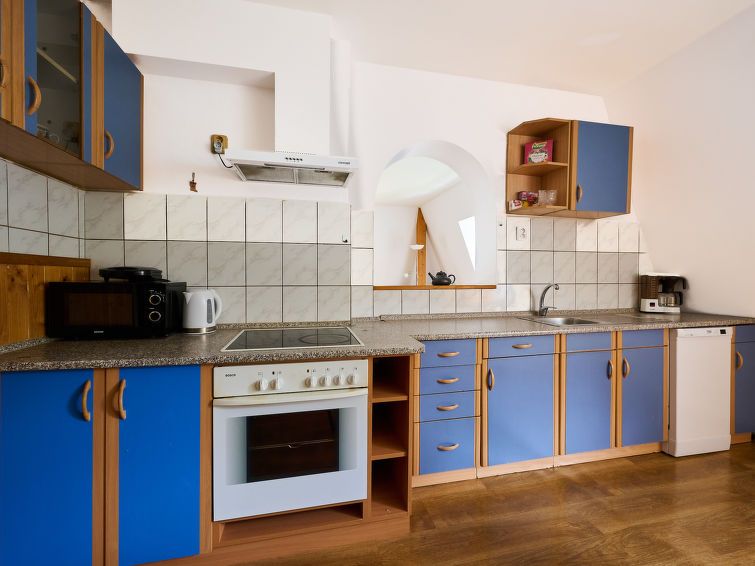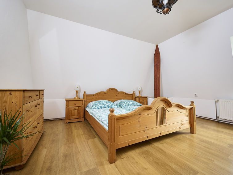 "Riedlovka", 4-room apartment on 2nd floor. Beautiful and rustic furnishings: large living room with TV. 1 small room with 1 bed. 1 room with 1 x 1 bunk beds. Kitchen (oven, dishwasher, 4 ceramic glass hob hotplates, toaster, kettle, microwave, freezer, electric coffee machine) with dining table.