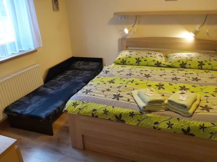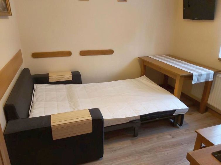 "Rieger 1", 2-room apartment 35 m2, on the ground floor. 1 room with 1 double bed and 1 folding bed. Kitchen-/living room (2 hot plates, kettle, electric coffee machine) with dining table, 1 double sofabed and satellite TV. Shower/WC. Facilities: Internet (WiFi, free). Please note: suitable for families.