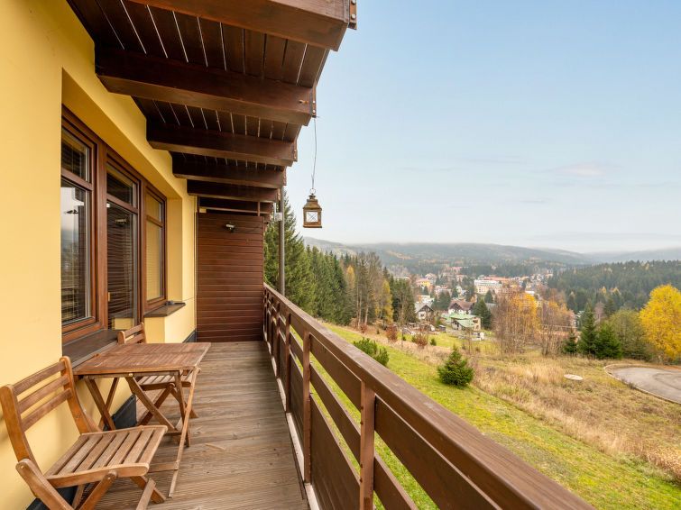 Beautiful apartment above Harrachov, 2km from the center. Good facilities, unfortunately the cleanliness left something to be desired (cigarette butts in the ashtray, window, blinds, pillows dirty), no trace of disinfection. Overall, however, to be recommended also because of the beautiful balcony and the underground parking space.