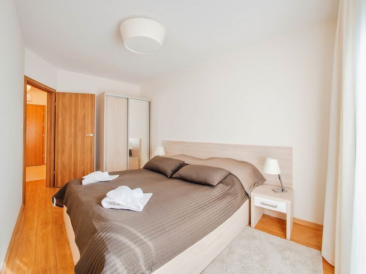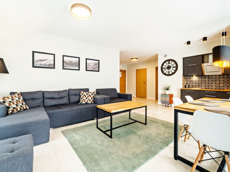 "Sun & Snow 6 people", 3-room apartment 51 to 65 m2. Living/sleeping room with 1 sofabed and flat screen. Exit to the balcony. 1 room with 1 double bed. 1 room with 1 double bed. Open kitchen (dishwasher, 1 induction hot plates, kettle) with dining nook. Shower/WC. Heating, gas heating.