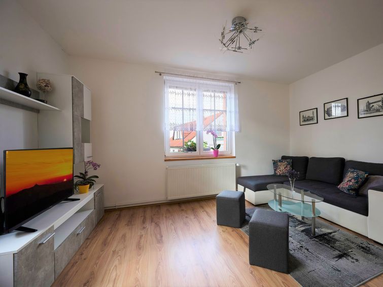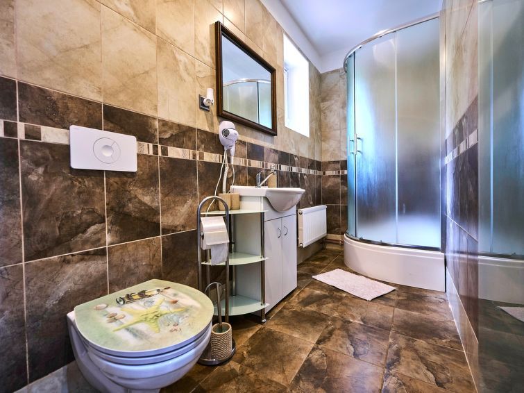 "Formanka", 2-room apartment 52 m2, on the ground floor. Living room with TV (flat screen). 1 room with 2 beds and 1 double bed. Kitchen (oven, 4 ceramic glass hob hotplates, kettle, microwave, freezer) with dining table. Shower/WC. Heating. Terrace. Terrace furniture, barbecue. Beautiful view of the mountains.
