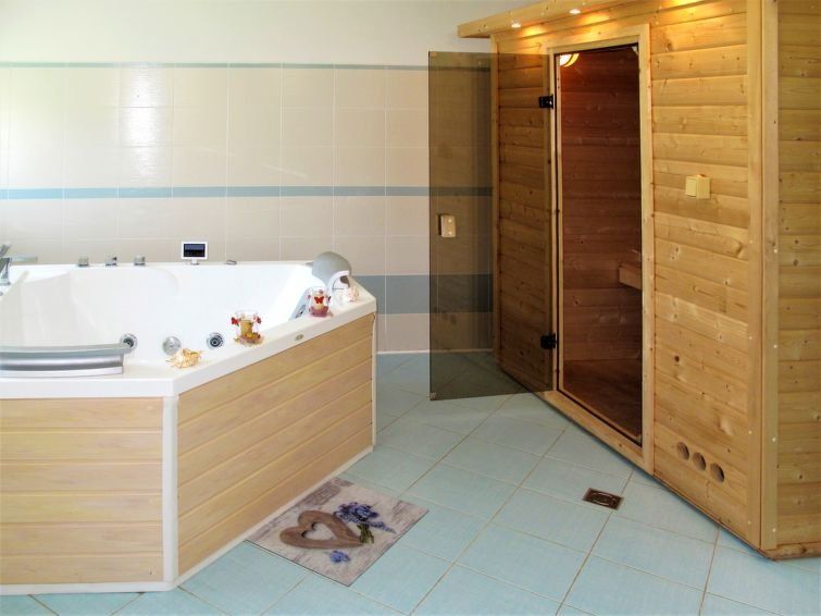 Suitable for 12 people in terms of space, but with a little less equipment (sometimes shelves or wardrobes are missing in the rooms). But an unpleasant surprise was the dirt in the house: dirty floor, stains of killed mosquitoes on the walls, stains on the bedclothes, greasy kitchen unit, uncleaned cabinets and shelves (fortunately the dishwasher worked), dirty refrigerator (also not suitable for 12 people), poorly draining some sinks/tubs in bathrooms. The garden is not maintained, the terrain of the garden is completely unsuitable for small children.