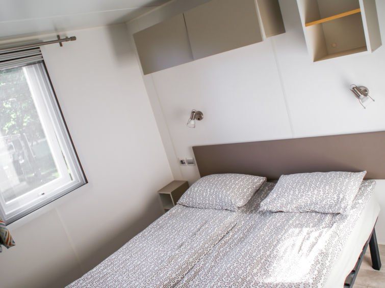 "Hawaii Style", 4-room mobile home 37 m2. Living room with 1 sofabed and dining table. 2 rooms, each room with 1 double bed. 1 room with 2 beds. Kitchen (4 gas rings, microwave, freezer, electric coffee machine). Shower, sep. WC. Electric heating. Terrace. Terrace furniture. Facilities: Internet (WiFi, free).