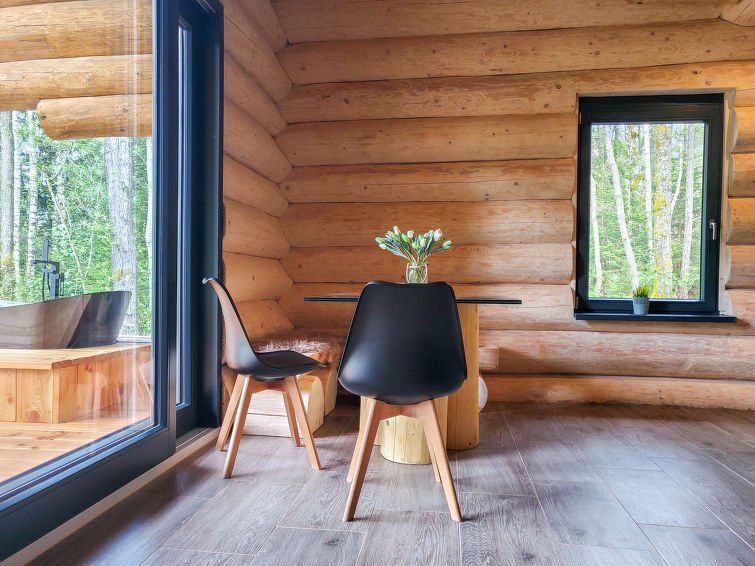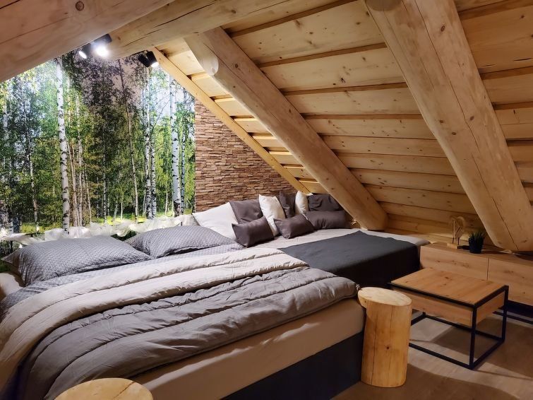 2-room chalet on 2 levels. Comfortable and modern furnishings: open living/dining room with panoramic window with Scandinavian wood stove and dining table. Exit to the terrace. Kitchen (4 hot plates, oven, dishwasher, kettle, microwave, electric coffee machine). Shower/WC. Underfloor heating.