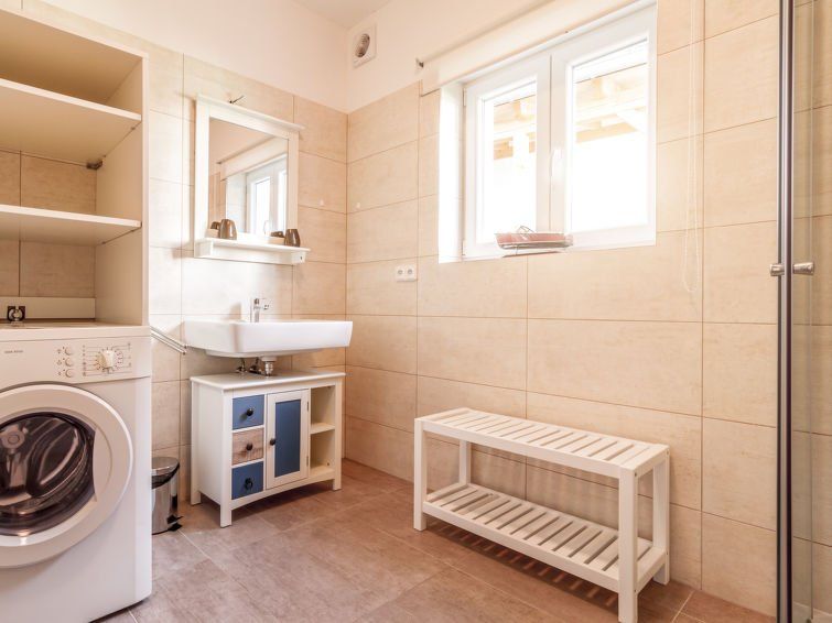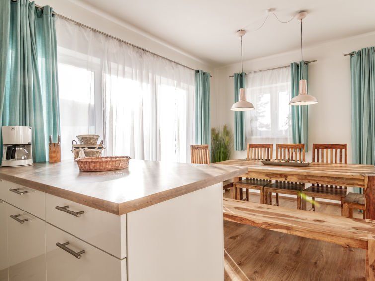 "Lakeside Village 4 (+ sauna)", 5-room house 100 m2 on 2 levels. Object suitable for 8 adults + 1 child. Comfortable and cosy furnishings: living room with 1 sofabed. Kitchenette (4 hot plates, oven, dishwasher, kettle, microwave, electric coffee machine) with dining table, satellite TV.