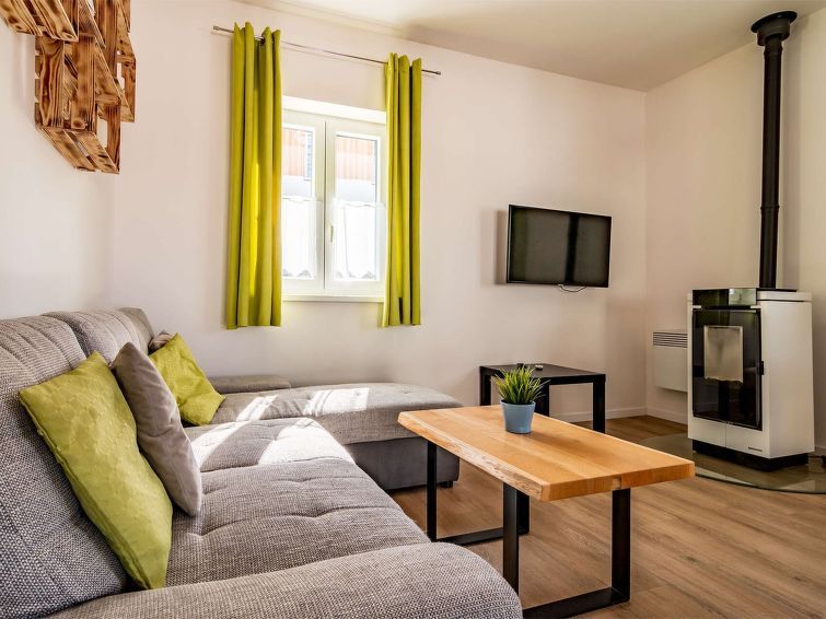 "Lakeside Village 38 (+ sauna)", 3-room house 72 m2 on 2 levels. Object suitable for 4 adults + 2 children. Comfortable and cosy furnishings: living room with 1 double sofabed and Scandinavian wood stove. Kitchenette (4 hot plates, oven, dishwasher, kettle, microwave, electric coffee machine) with dining table, satellite TV.