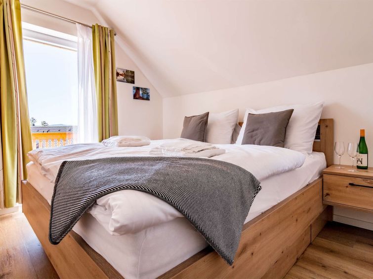 "Lakeside Village 35", 6-room house 120 m2 on 2 levels. Object suitable for 9 adults + 1 child. Comfortable and cosy furnishings: living room with Scandinavian wood stove. 1 room with 1 x 2 bunk beds. Kitchenette (4 hot plates, oven, dishwasher, kettle, microwave, electric coffee machine) with dining table, satellite TV.