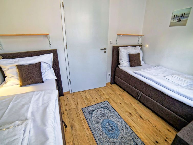 "Lakeside Village 6", 3-room apartment 52 m2, on the ground floor. Comfortable and cosy furnishings: living room. 1 room with 1 double bed. 1 room with 2 beds. Kitchenette (4 hot plates, oven, dishwasher, toaster, kettle, microwave, electric coffee machine) with dining table, satellite TV.