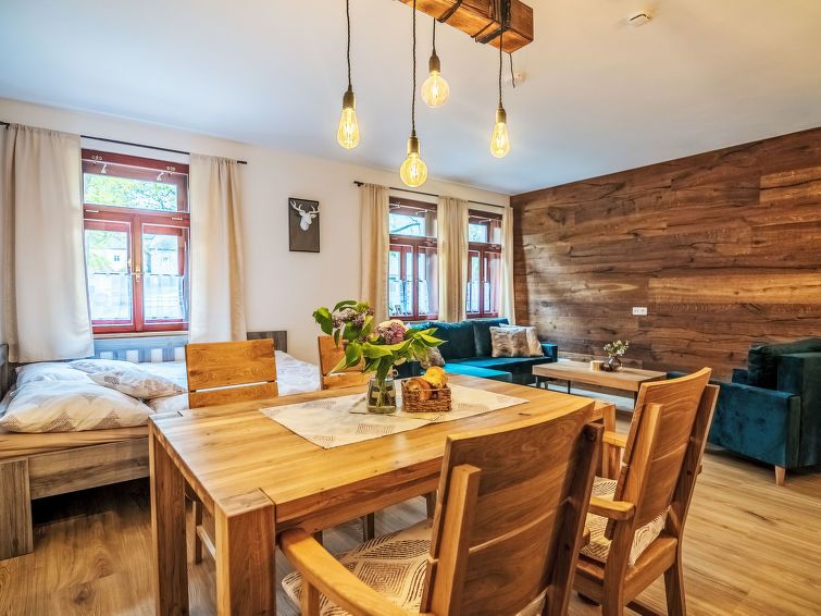 "Maňava", 2-room apartment 53 m2, on the ground floor. Spacious and bright, very beautiful and stylish furnishings: living/sleeping room with 1 double bed and Scandinavian wood stove (only for decoration), dining table. 1 room with 1 double bed. Kitchenette (oven, 4 ceramic glass hob hotplates, kettle, microwave, electric coffee machine).