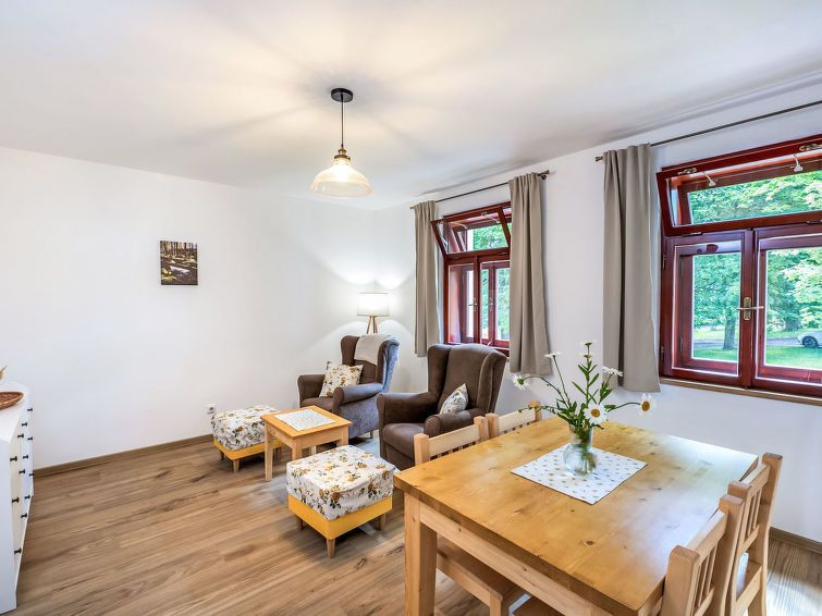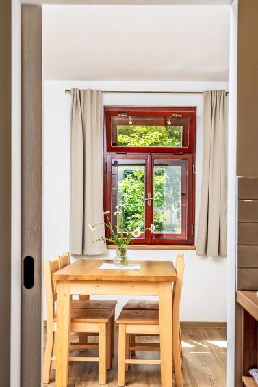 "Želnava", 3-room apartment 53 m2, on the ground floor. Spacious and bright, very beautiful and stylish furnishings: living/dining room with dining table. 1 room with 1 double bed. 1 room with 2 beds. Kitchenette (oven, 4 ceramic glass hob hotplates, kettle, microwave, electric coffee machine).